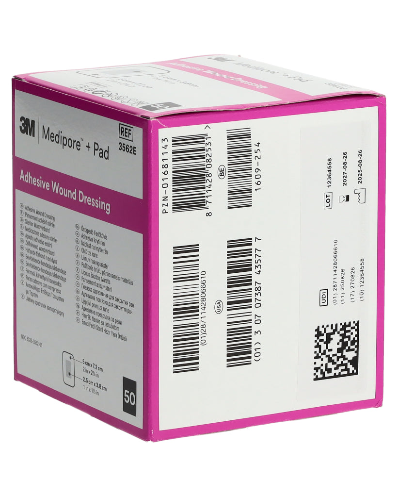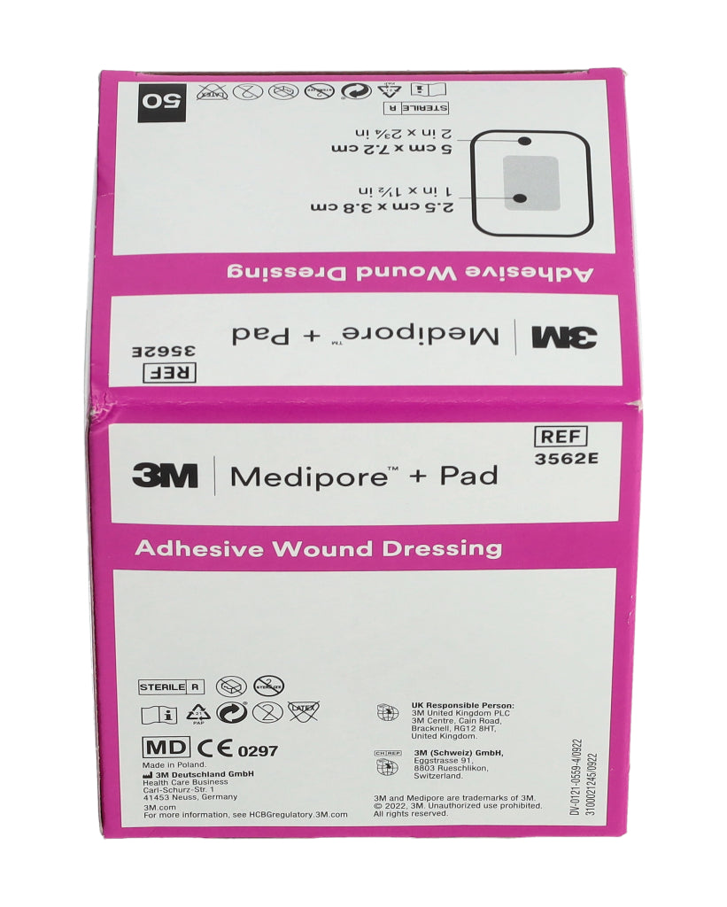 3M Medipore+Pad 5x7.2cm Wundkissen 2.5x3.8cm 50 Stk