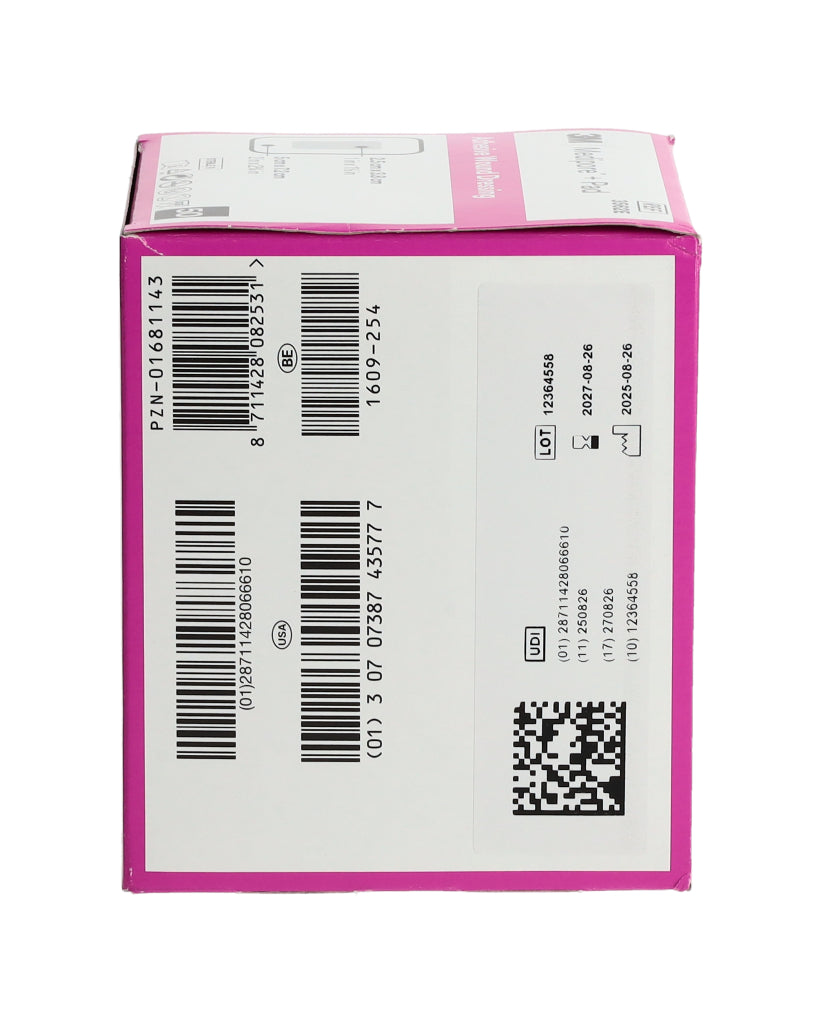 Weiches, anschmiegsames Polyestervlies mit abgerundeten Ecken. Nicht haftendes Wundpad zur Aufnahme von Blut und Wundexsudat. Hypoallergener Polyacrylatkleber : vermindert das Risiko von Hautreizungen auch bei längerer Anwendung. Atmungsaktiv, bei Abschürfungen, Schnittwunden, chirurgischen Wunden und I.V. - Kathetereinstichstellen.