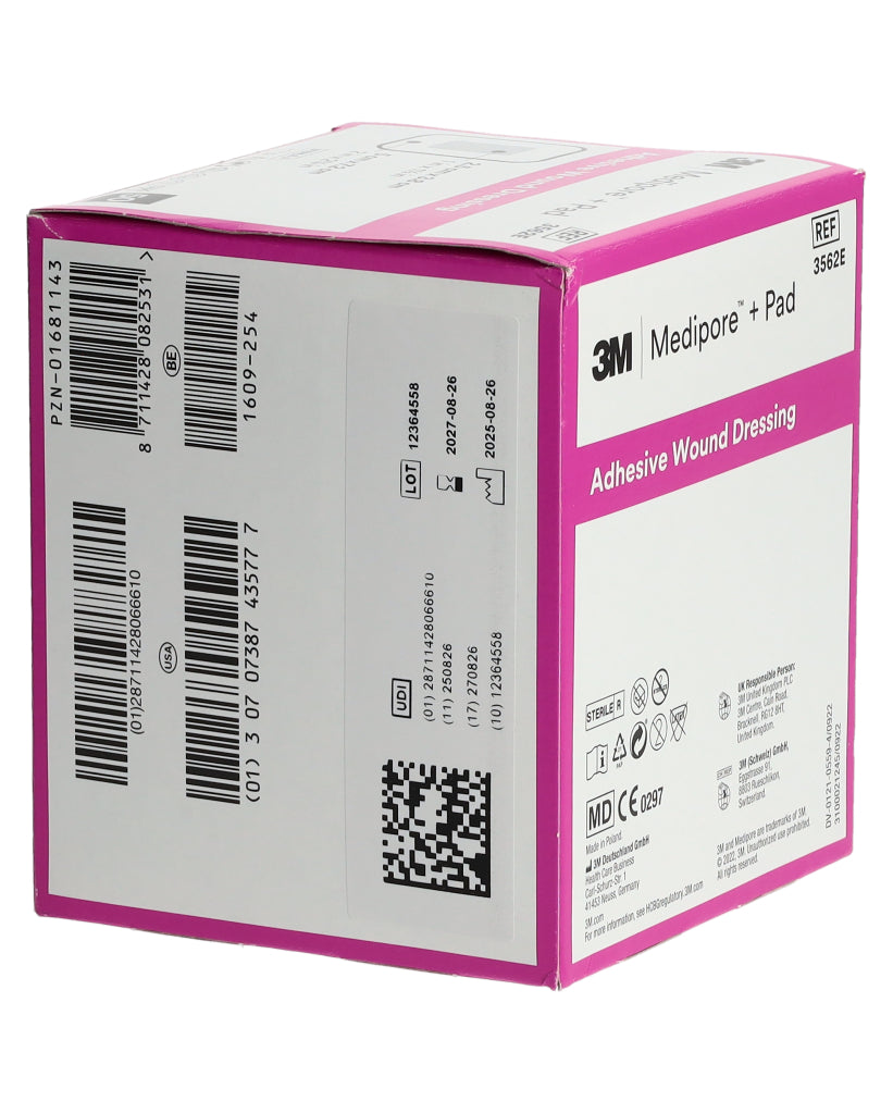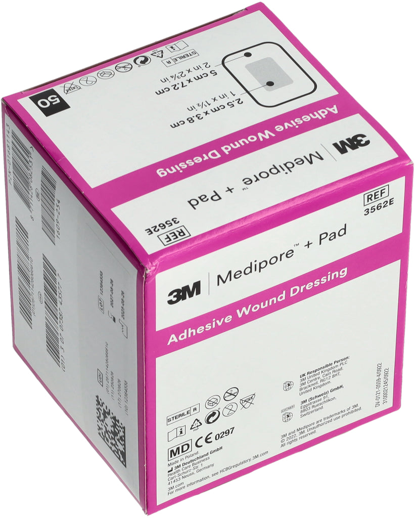 Medipore + Pad mit saugfähiger Wundauflage ist ein vielseitig verwendbarer, steriler Fertigverband. Die saugfähige Wundauflage verklebt nicht mit der Wunde. Ideal für oberflächliche Schürfwunden, Schittverletzungen, Verbrennungen (bis Grad IIa) und Hautnähte.