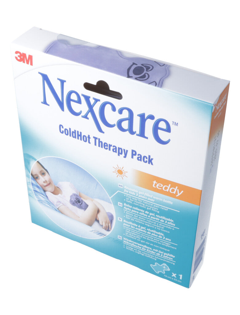 Beim Nexcare™ ColdHot Therapy Pack Teddy handelt es sich um eine wiederverwendbare, mit Gel gefüllte Wärmflasche mit einer samtigen, weichen Stoffoberfläche, die sich sofort und mühelos anwenden lässt. Eine unbedenkliche, wirkstofffreie und leicht anwendbare beruhigende Wärmequelle für den Gebrauch zuhause und in der Freizeit. Hilft, Muskelkrämpfe zu lösen, lindert Schmerzen, beruhigt und entspannt.