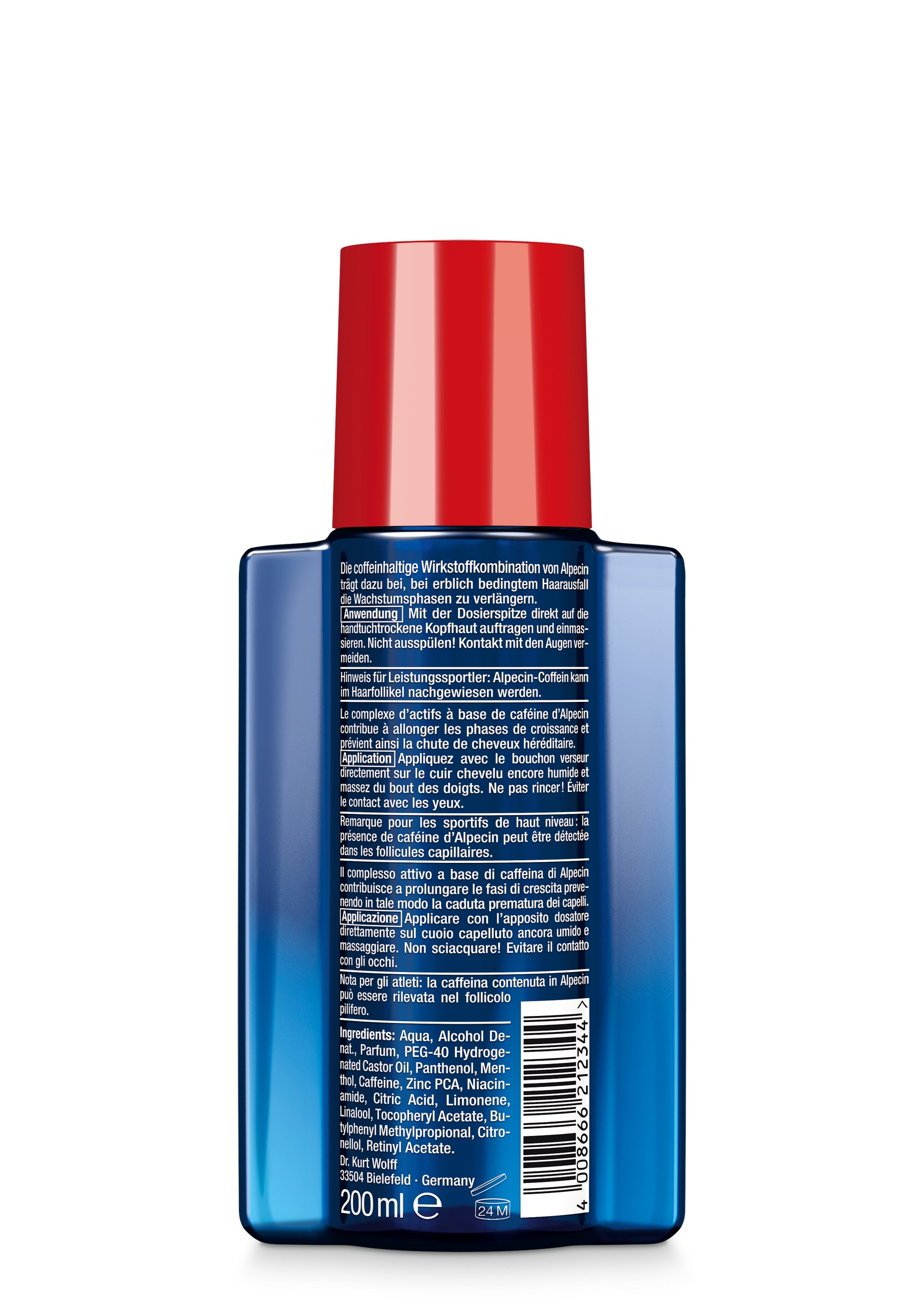 Alpecin Hair Energizer Liquid Tonikum hält mit seiner coffeinhaltigen Wirkstoffkombination die Haarwurzel wach. Zudem trägt es dazu bei, die Wachstumsphasen auszudehnen. Es wirkt dem vorzeitigen Ausfall der Haare entgegen, stärkt die Haarwurzel und beschleunigt das Wachstum der Haare.
