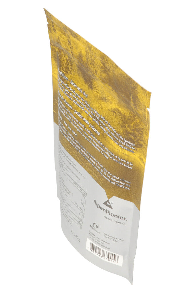 Am Morgen erfrische ich gerne das Müesli, am Mittag helfe ich dem Salat auf die Sprünge und am Abend gebe ich der Pasta den letzten Kick. Mit meiner schier endlosen Kraft liefere ich wertvolle Fettsäuren, Ballaststoffe und eine geballte Ladung Proteine. Das Maximum.