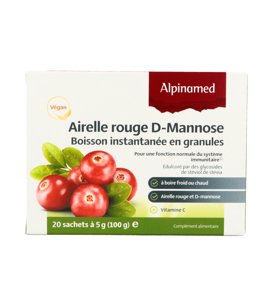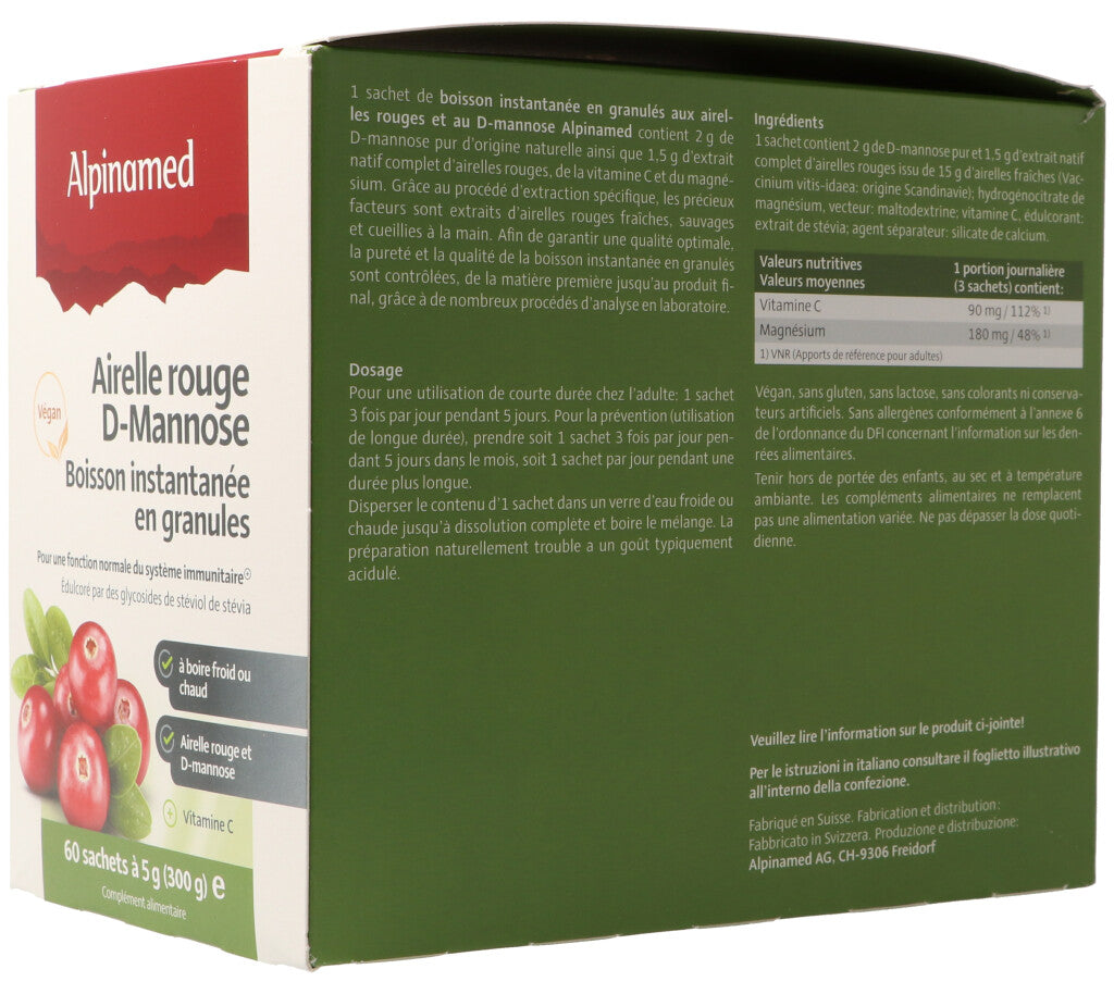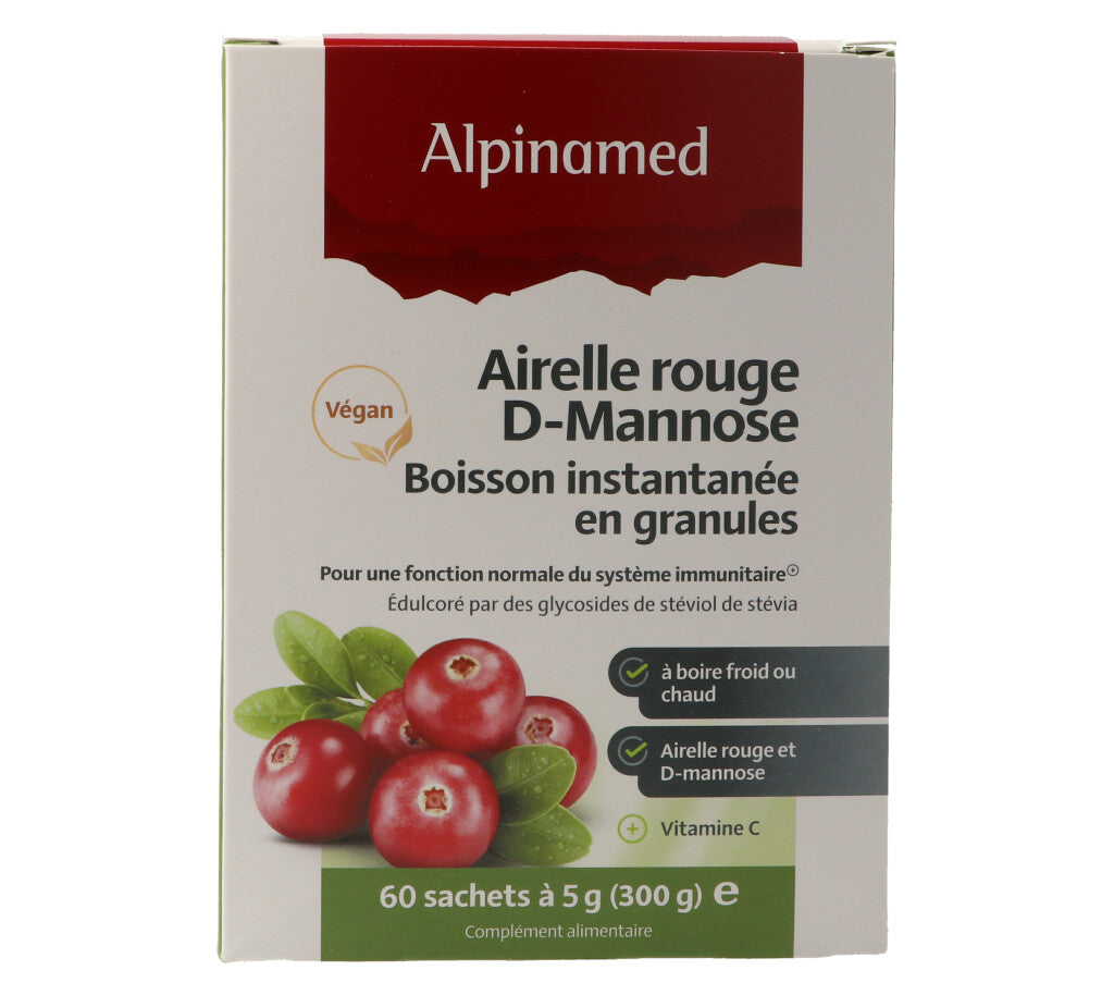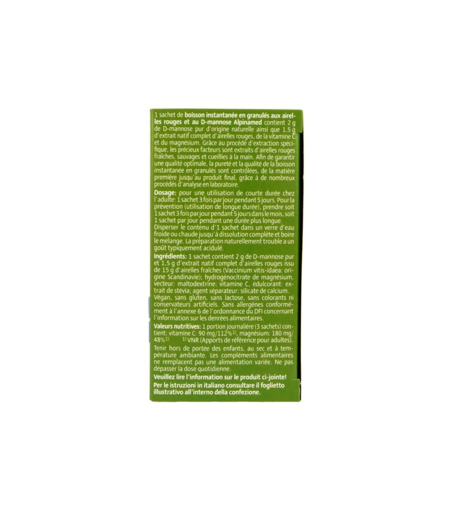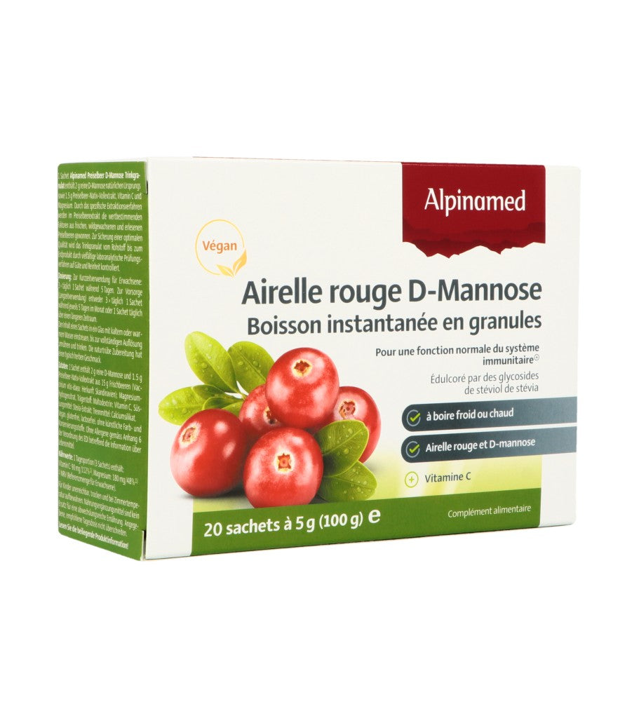 Im Gegensatz zu klassischen D-Mannose Produkten enthält Alpinamed Preiselbeer D-Mannose Trinkgranulat zusätzlich zur D-Mannose einen besonderen Spezialextrakt aus der frischen europäischen Preiselbeere, sowie Vitamin C und Magnesium. Hochkonzentrierter nativer Preiselbeerextraktund D-Mannose bilden eine ideale Synergie.