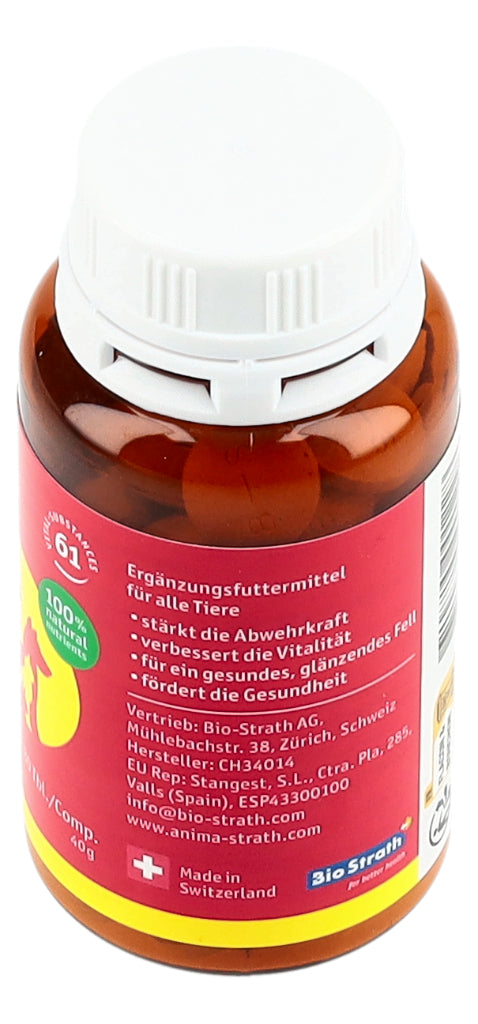 Anima-Strath Aufbautabletten ist ein natürliches Aufbau- und Ergänzungs- Futtermittel auf Basis der hochwertigen Strath Kräuterhefe. Anima-Strath Tabletten bereichert das Futter deines Tieres mit 61 wertvollen Vitalstoffen.