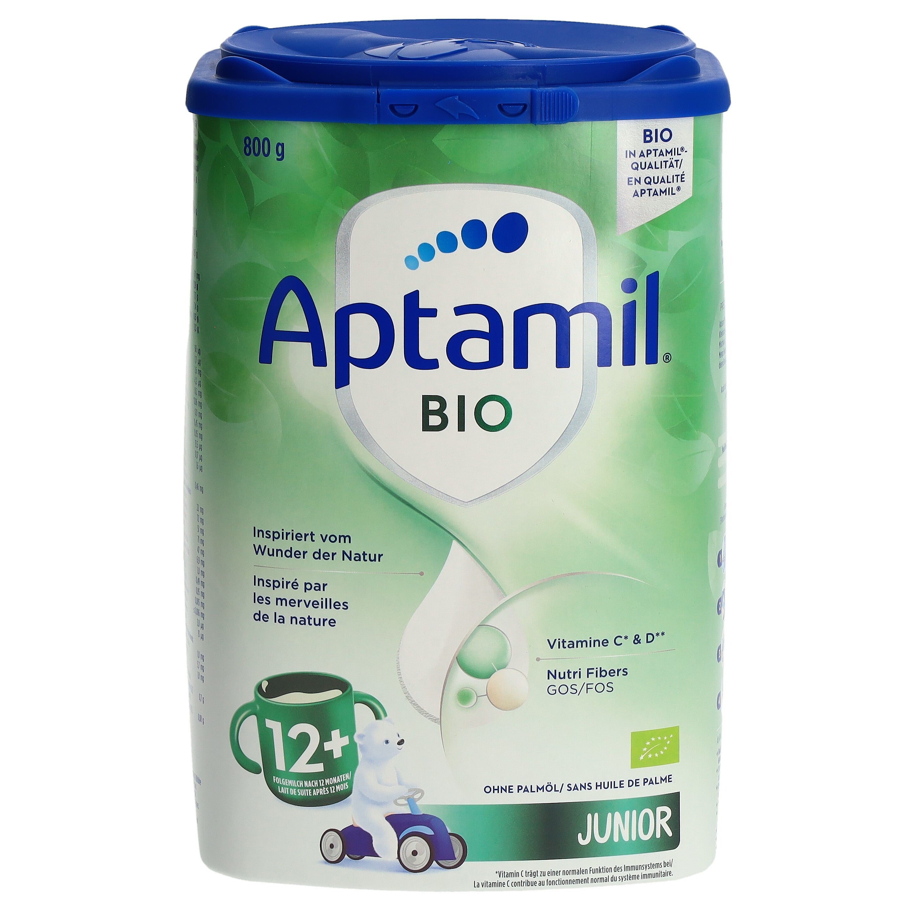 Aptamil® Bio Junior 12+ eignet sich für Kleinkinder ab 1 Jahr bis 3 Jahren als Teil einer gesunden Mischkost. Es enthält eine angemessene Menge Eiweiss und wichtige Nährstoffe, die in dieser Entwicklungsphase benötigt werden.