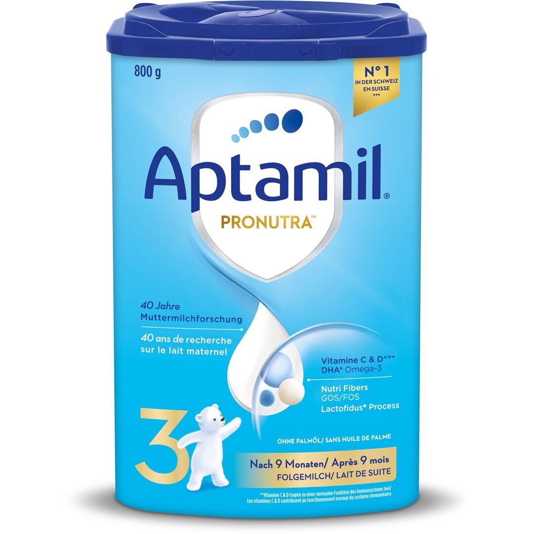 Aptamil Pronutra Folgemilch - Unser Original. Seit 10 Jahren die Nr. 1 bei Schweizer Eltern* und stets weiterentwickelt. Aptamil Pronutra Folgemilch - Unser stets weiterentwickeltes, bewährtes und beliebtes Original enthält wichtige Nährstoffe für dein Baby nach dem Stillen. Basierend auf 50 Jahren Muttermilchforschung: Aptamil Pronutra X ist hergestellt mit unserem schonendem Lactofidus® Prozess und natürlich mit unserer besonderen Aptamil-Rezeptur mit Nutri-Fibers GOS/FOS und allen wichtigen Nährstoffen, wie u.a. Vitamin C & D**. Ohne Stärke & ohne Palmöl. *Nielsen + IQVIA, Folgemilch, Marktanteil Volumen, Schweizer Detail- und Fachhandel, ab 2010 **Gesetzlich für Folgenahrung vorgeschrieben. Wichtiger Hinweis: Stillen ist ideal für Ihr Kind. Folgemilch eignet sich nur für Kinder ab 6 Monaten. Lassen Sie sich beraten. Eure Milchmomente sind so individuell wie ihr. Jedes Baby, jede Familie und wie sie das Elternsein erlebt, all das ist einzigartig. Es gibt keine «Einheitslösung» und keine «Formel». Jede Familie hat eine andere Geschichte. Inspiriert von 50 Jahren Muttermilchforschung bietet Aptamil daher hochwertige Folgemilchen an, die auf eure individuellen Bedürfnisse abgestimmt sind. Darüber hinaus ist unser Aptaclub Expertenteam immer für euch da, so wie ihr für euer Baby. Mit individueller Beratung rund um Schwangerschaft, Geburt und Baby – kostenlos und ohne Anmeldung. Wir freuen uns auf eure Kontaktaufnahme (Telefon: 0800 55 06 09 | Mail: info@aptaclub.ch). Aptamil - Euer Leben. Unsere Wissenschaft.