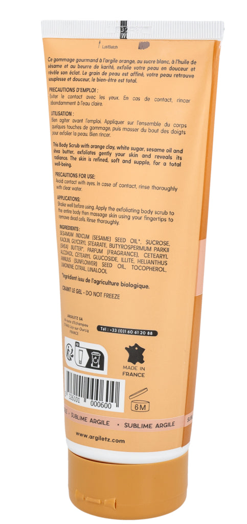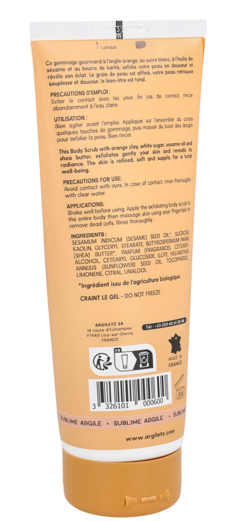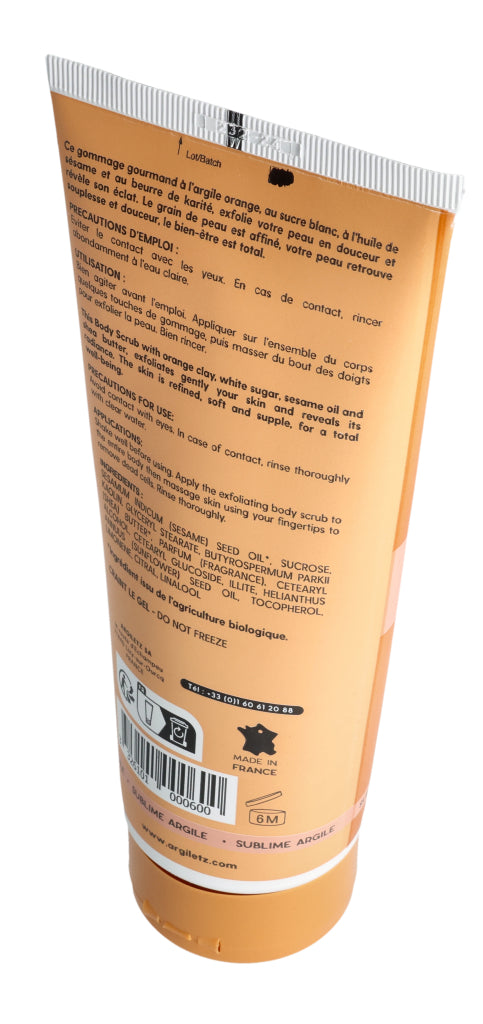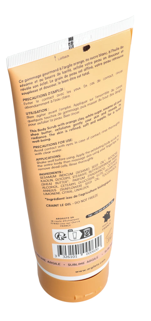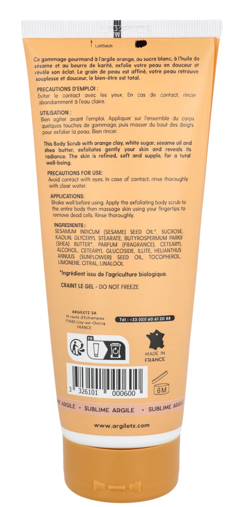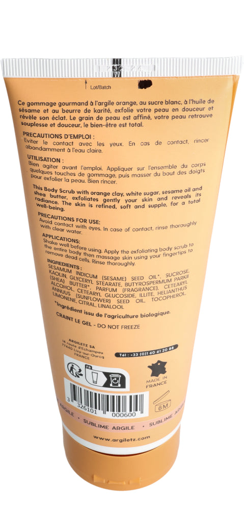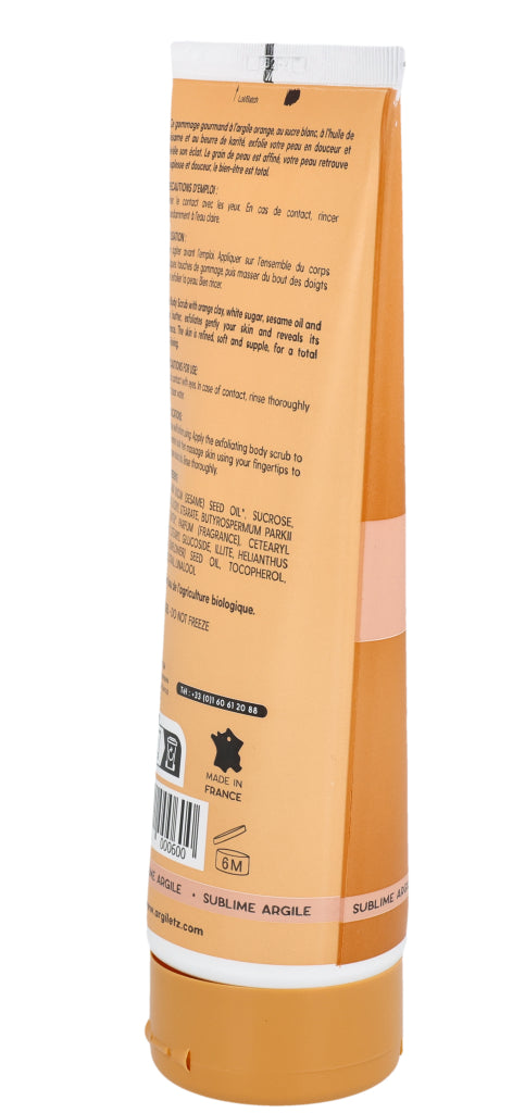 Dieses Gourmet-Peeling mit Orangenerde, weissem Zucker, Sesamöl und Sheabutter peelt Ihre Haut sanft und zeigt ihre Ausstrahlung.
