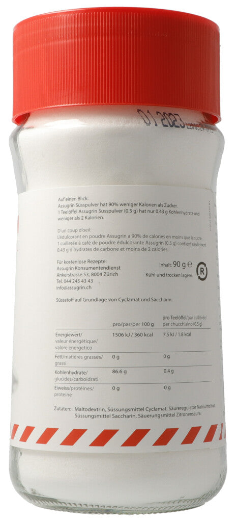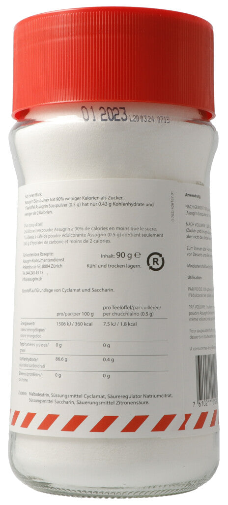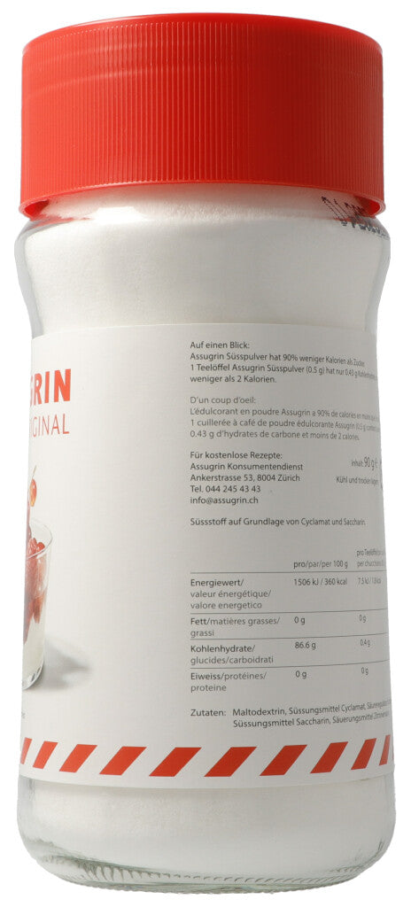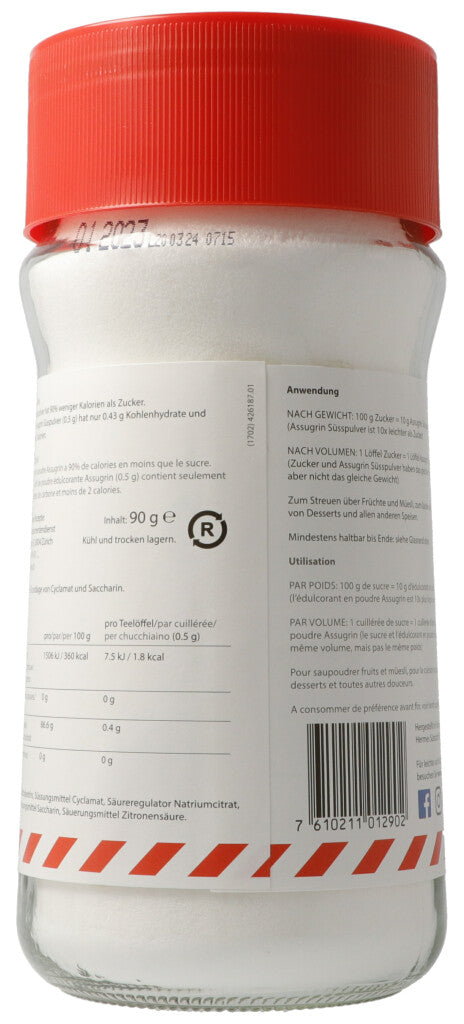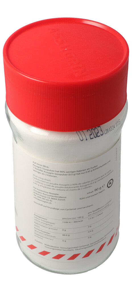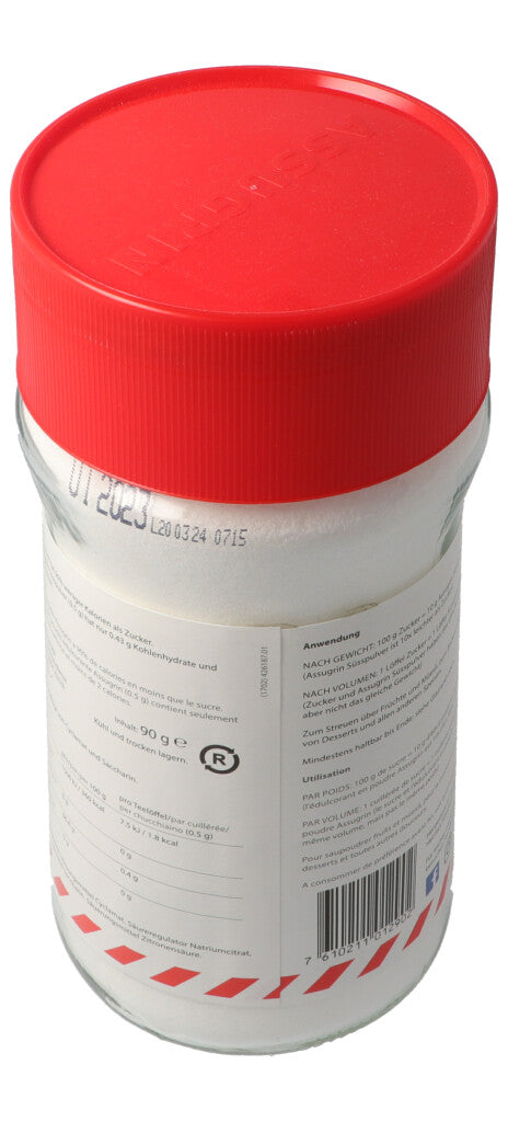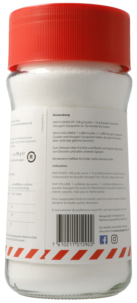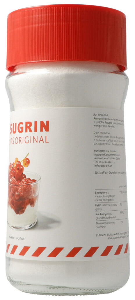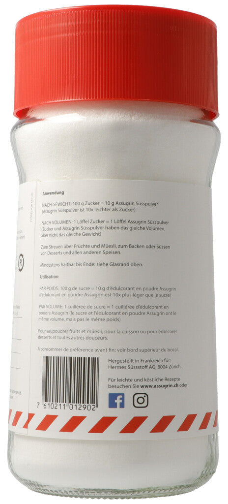 100g Zucker = 10g Assugrin Süsspulver