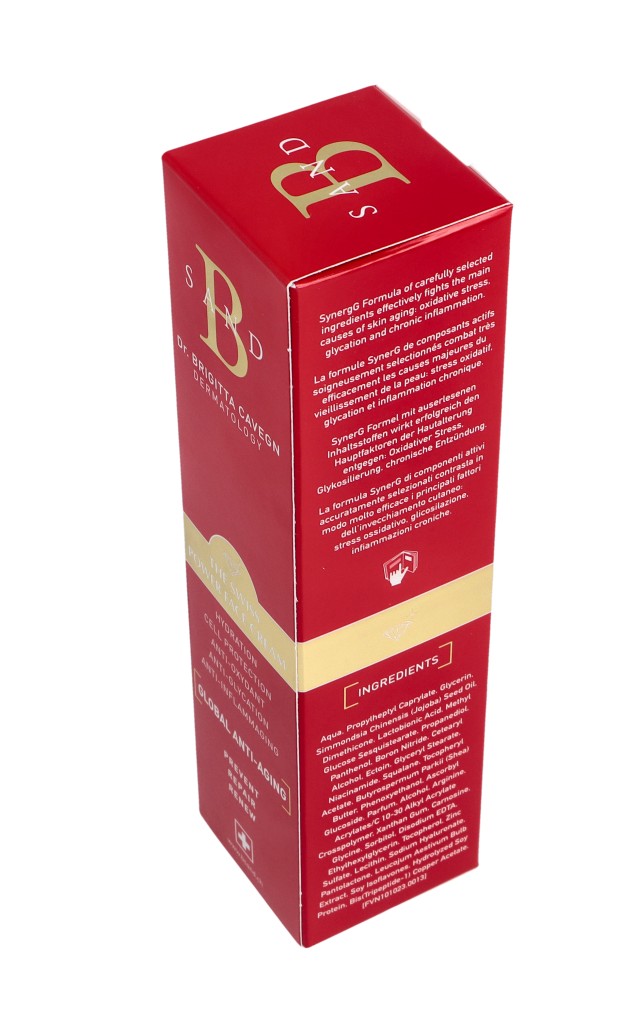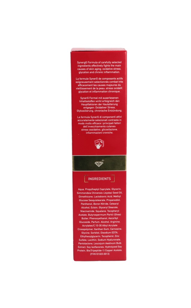 Wasser, Propylheptyl Caprylat, Glycerin, Jojoba-Samenöl, Dimethicon, Lactobionsäure, Methylglucose-Sesquistearat, Propandiol, Panthenol, Borstickstoffid, Cetearylalkohol, Ectoin, Glycerylstearat, Niacinamid, Squalan, Tocopherylacetat, Shea-Butter, Phenoxyethanol, Ascorbylglucosid, Parfum, Alkohol, Arginin, Acrylate/C10-30 Alkylacrylat-Crosspolymer, Xanthan, Carnosin, Glycin, Sorbitol, Dinatrium-EDTA, Ethylhexylglycerin, Tocopherol, Zinksulfat, Lecithin, Natriumhyaluronat, Pantolacton, Extrakt aus der Sommer-Schneeflockenblume, Soja-Isoflavone, Hydrolysiertes Sojaprotein, Kupfertripeptid-Komplex