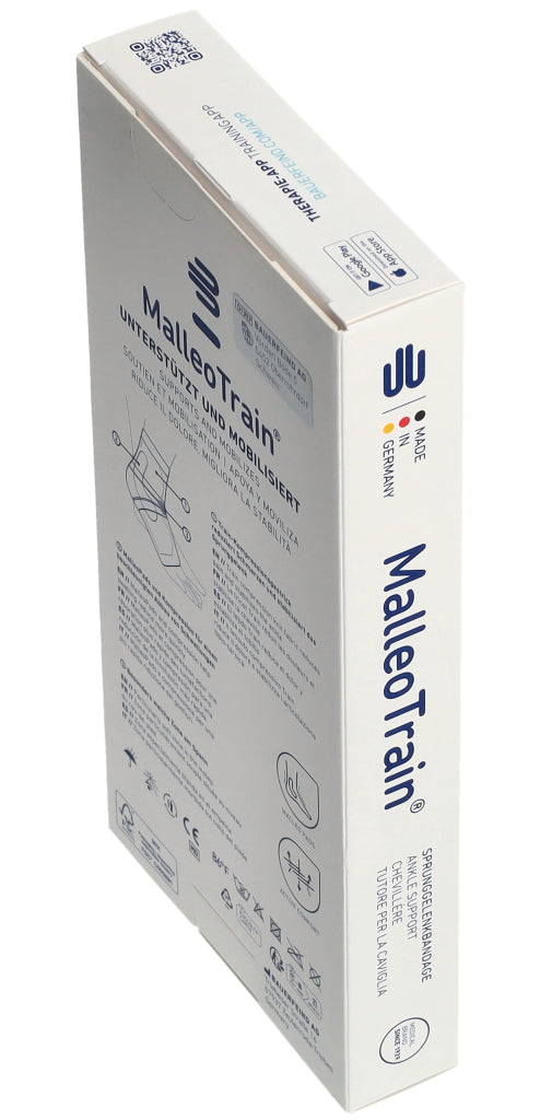 Eine Aktivbandage zur muskulären Stabilisierung des Sprunggelenks. Die Bandage aktiviert, mobilisiert und ist medizinisch wirksam. Sie bietet einen hohen Tragekomfort, sicheren Sitz, ist anatomisch formgestrickt und atmungsaktiv.