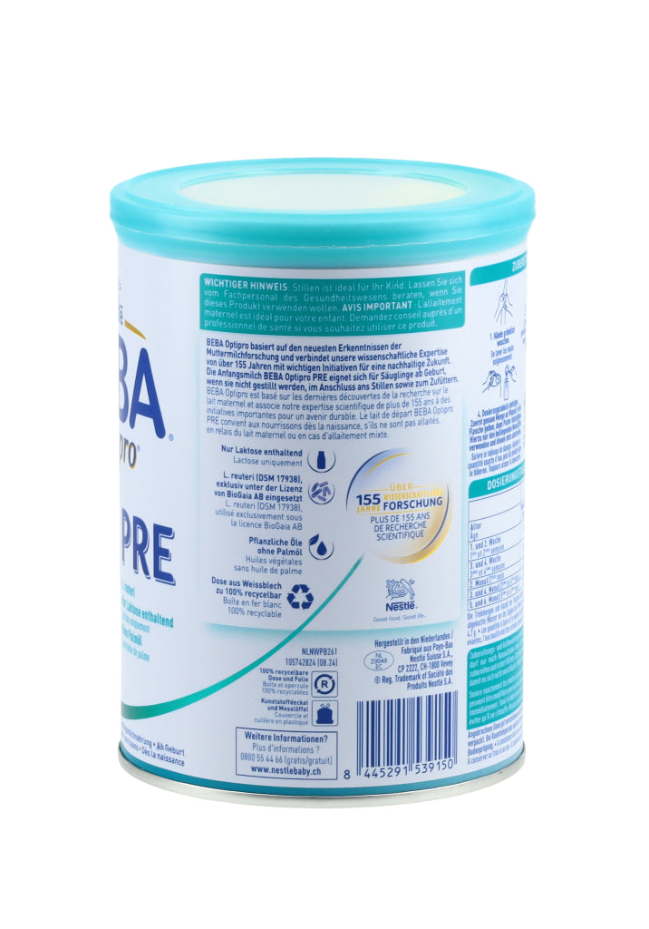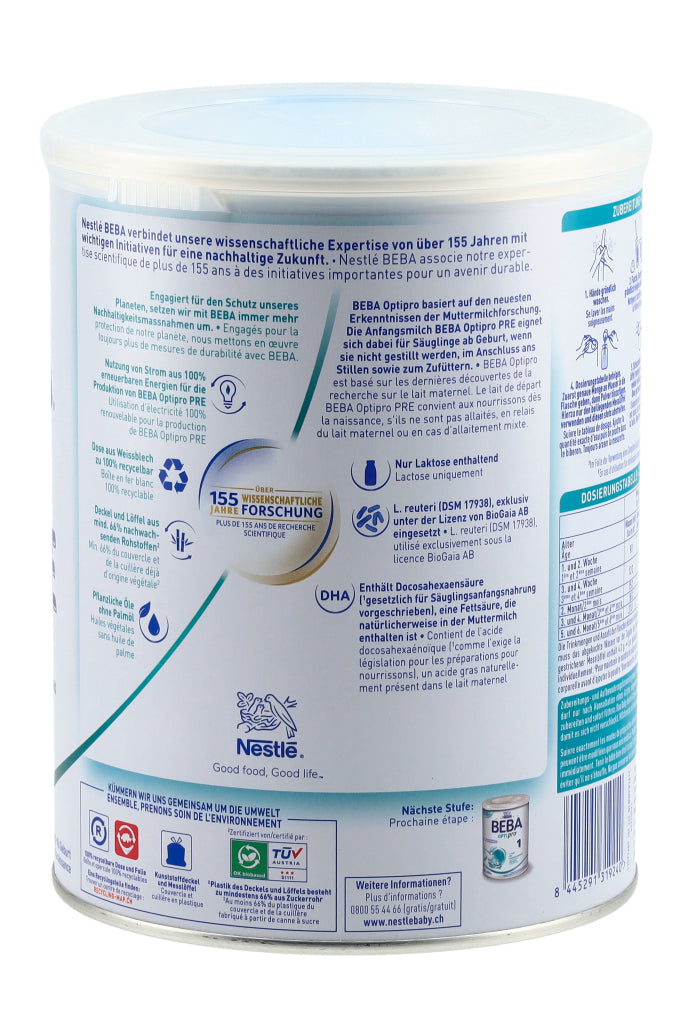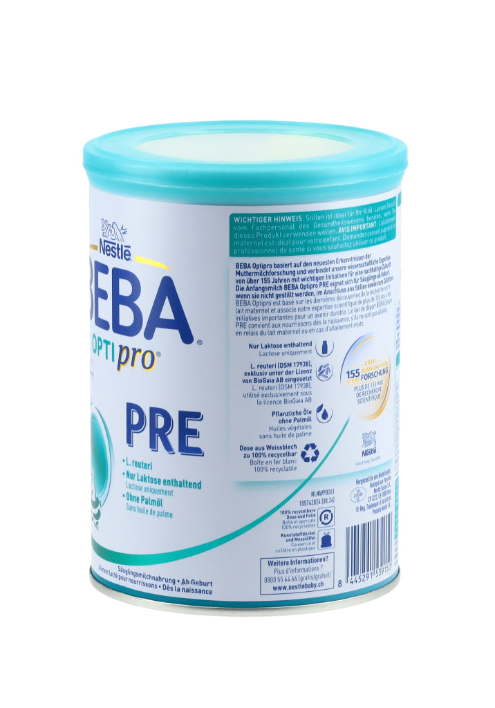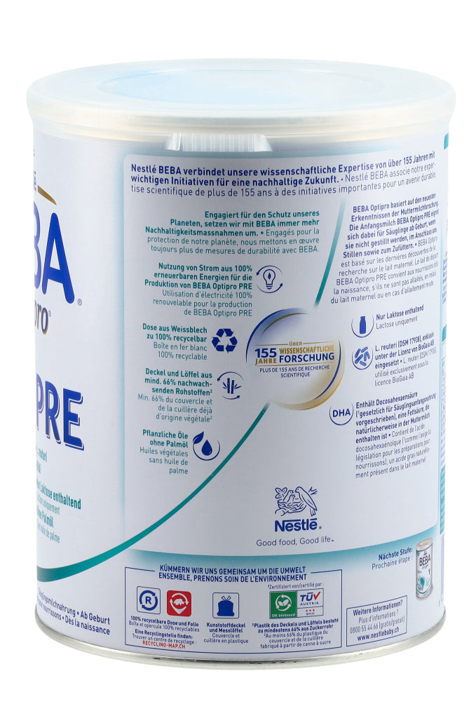 Entdecken Sie das innovativste und beste Optipro aller Zeiten! BEBA Optipro basiert auf den neuesten Erkenntnissen der Muttermilchforschung sowie auf unserer wissenschaftlichen Expertise von über 155 Jahren. Die Anfangsmilch BEBA Optipro PRE eignet sich dabei für Säuglinge ab Geburt, wenn sie nicht gestillt werden, im Anschluss ans Stillen sowie zum Zufüttern. Die einzigartige Formel enthält unter anderem L. reuteri (DSM 17938, exklusiv unter der Lizenz von BioGaia AB eingesetzt) und DHA (Docosahexaensäure; gesetzlich für Säuglingsanfangsnahrung vorgeschrieben), eine Fettsäure, die natürlicherweise in der Muttermilch enthalten ist. Ohne Palmöl. Nur Laktose enthaltend.