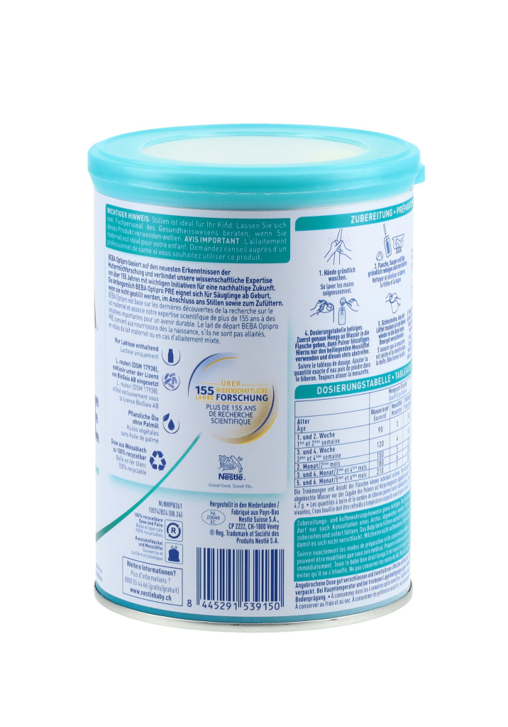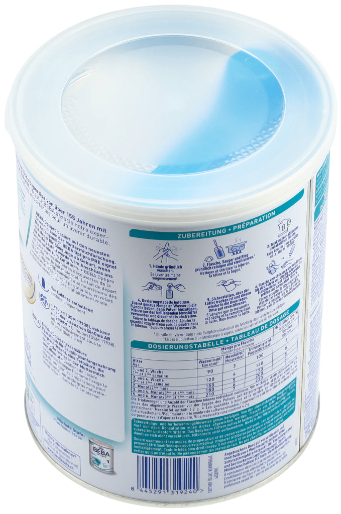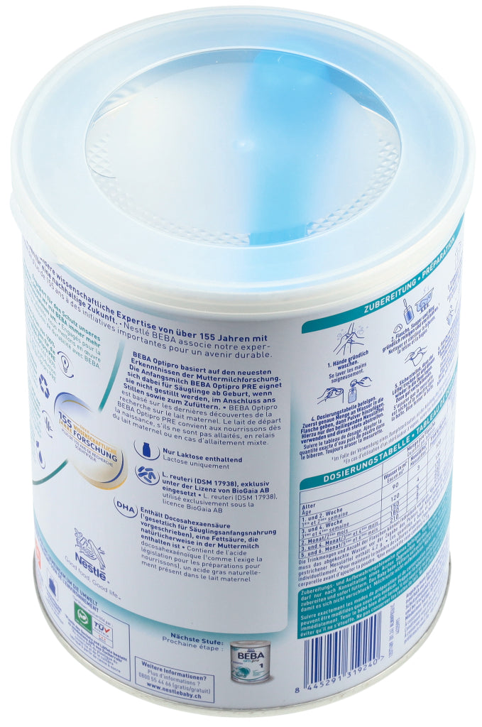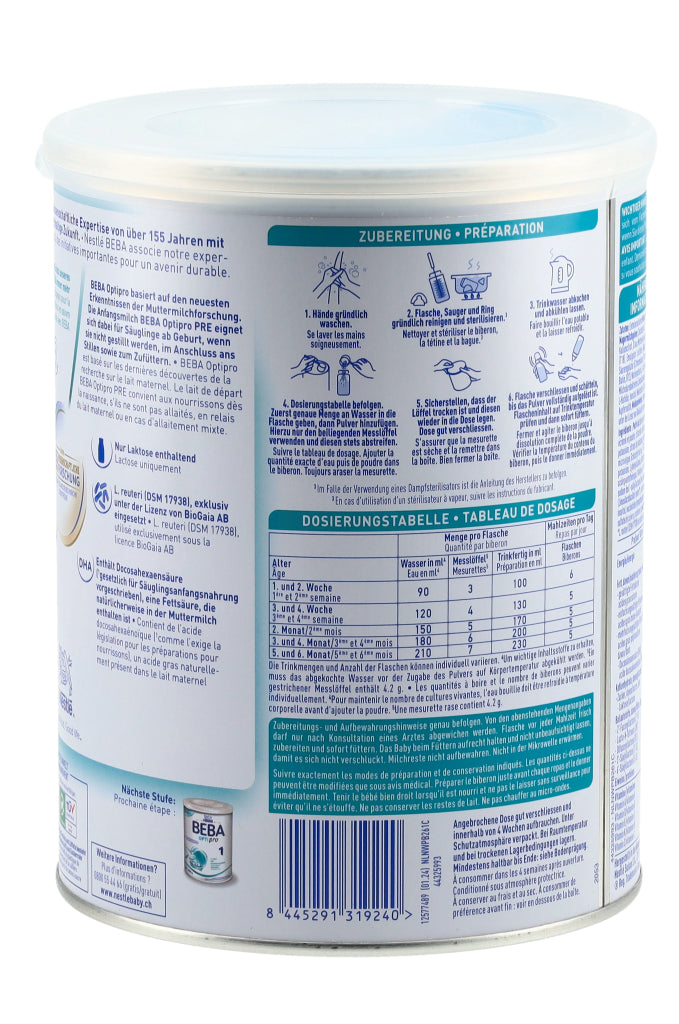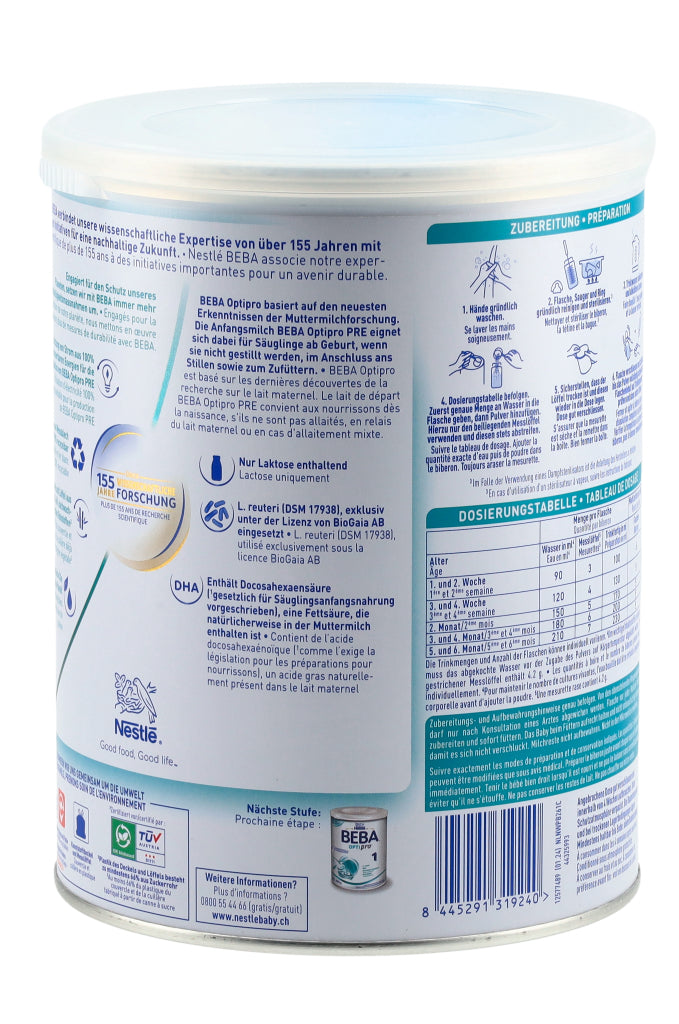 Entdecken Sie das innovativste und beste Optipro aller Zeiten! BEBA Optipro basiert auf den neuesten Erkenntnissen der Muttermilchforschung sowie auf unserer wissenschaftlichen Expertise von über 155 Jahren. Die Anfangsmilch BEBA Optipro PRE eignet sich dabei für Säuglinge ab Geburt, wenn sie nicht gestillt werden, im Anschluss ans Stillen sowie zum Zufüttern. Die einzigartige Formel enthält unter anderem L. reuteri (DSM 17938, exklusiv unter der Lizenz von BioGaia AB eingesetzt) und DHA (Docosahexaensäure; gesetzlich für Säuglingsanfangsnahrung vorgeschrieben), eine Fettsäure, die natürlicherweise in der Muttermilch enthalten ist. Ohne Palmöl. Nur Laktose enthaltend.