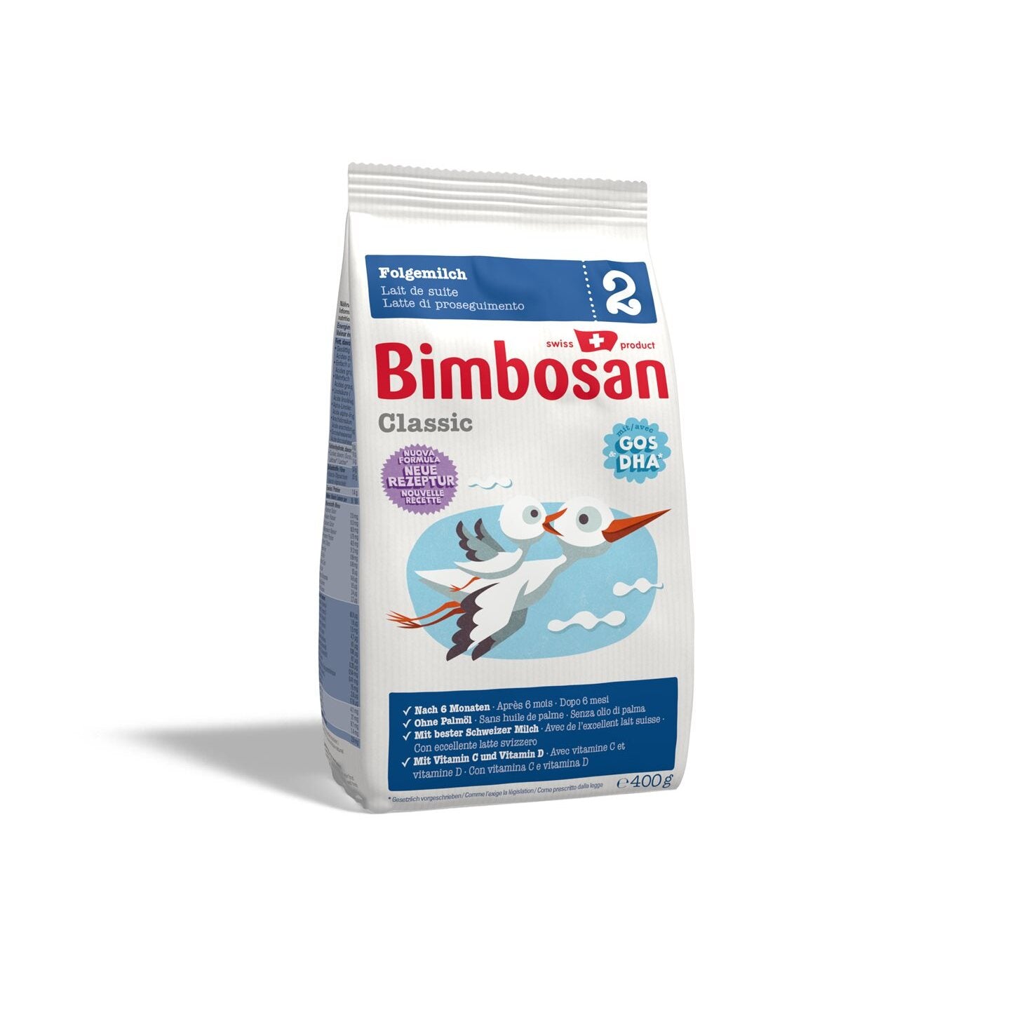 Bimbosan Classic 2 ist eine Folgemilch für Säuglinge nach 6 Monaten, hergestellt aus hochwertiger Schweizer Milch und eignet sich als Ergänzung zur Beikost.
