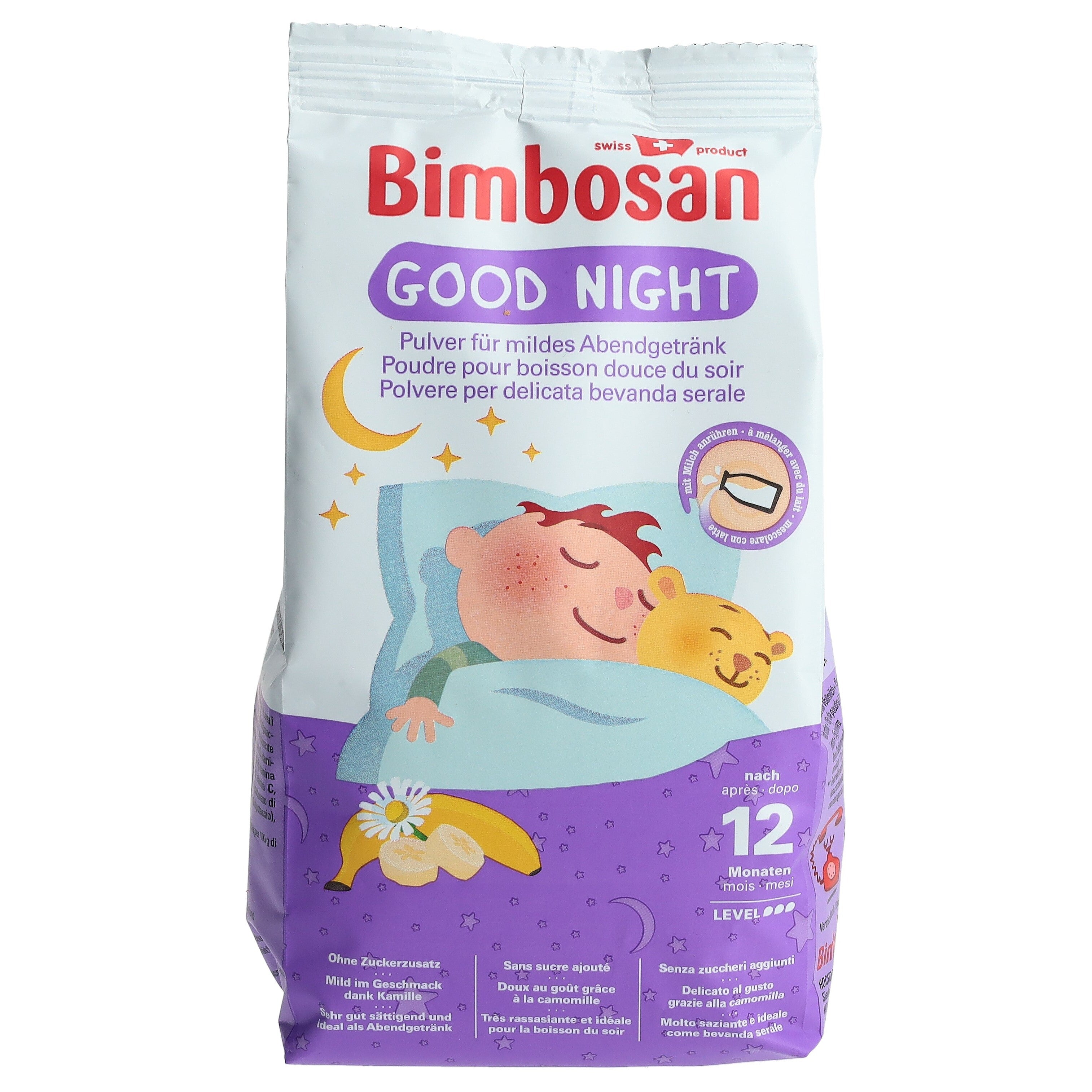 Bimbosan Good Night ist ein anrührfertiges, mildes und sehr sättigendes Getreidepulver. Es besteht aus verschiedenen auserlesenen Getreidesorten sowie Malz und Kamillenpulver. Bimbosan Good Night enthält keinen zugesetzten Zucker, dafür viele wertvolle Vitamine und Mineralstoffe und ergänzt dadurch einen Kuhmilch-Schoppen. Bimbosan Good Night ist einfach in der Zubereitung und bietet eine sättigende Mahlzeit für die Nacht.