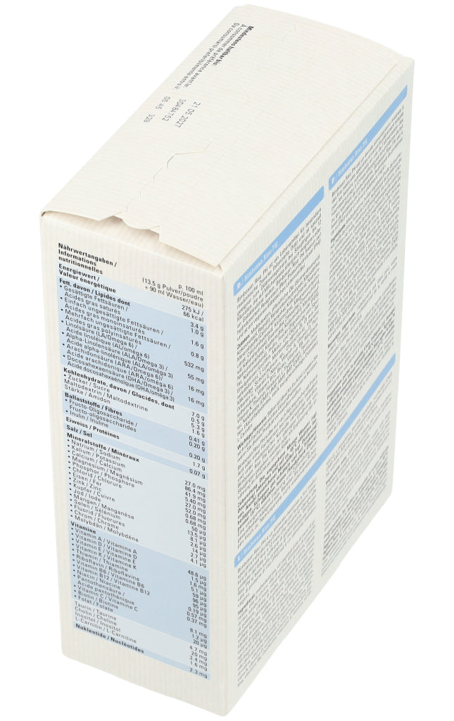 | Docosahexaensäure (DHA) | 16 mg | 13.5g Pulver + 90ml Wasser = 100 ml | ||