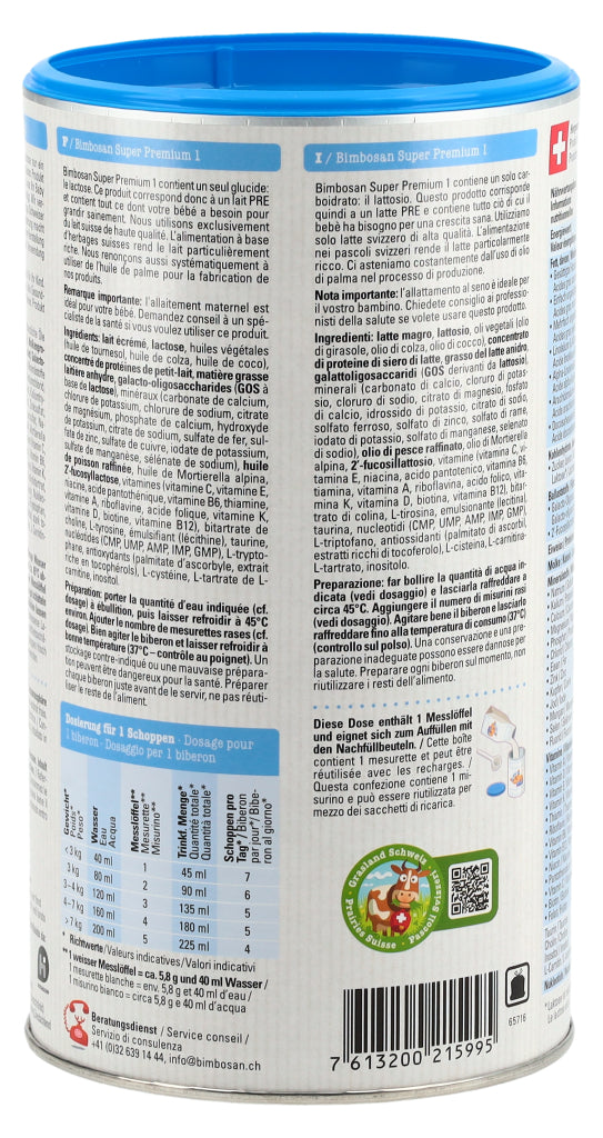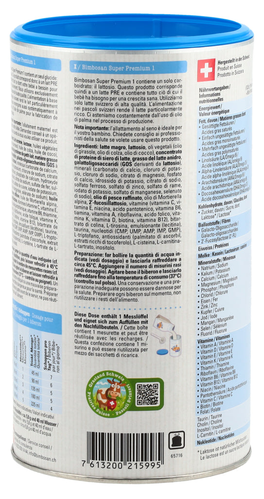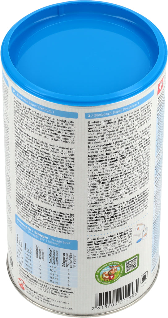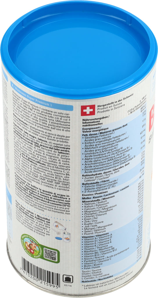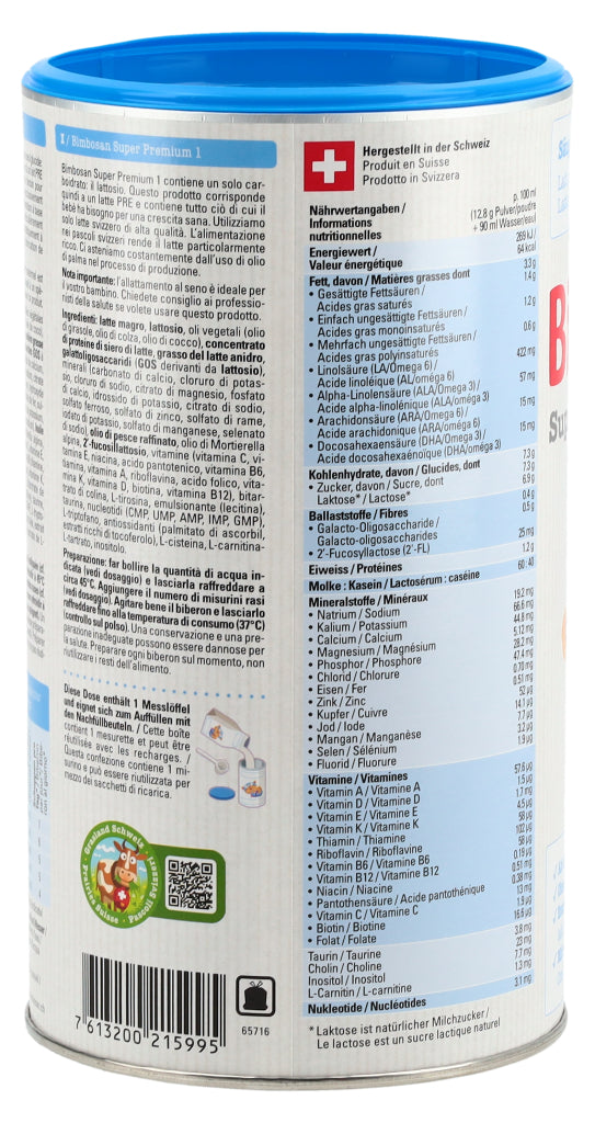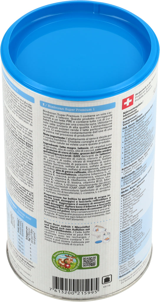 Die Super-Modernen, Auch die modernsten Bimbosan-Milchen enthalten erstklassige Schweizer Kuhmilch. Unsere Super Premium Milchen überzeugen durch ihren milchigen, exzellenten Geschmack und ihre ergänzenden Zutaten. Sie erfüllen die neusten Empfehlungen und Vorgaben und versorgen Säuglinge und Kleinkinder in jeder Phase mit den Nährstoffen, die sie brauchen. Super Premium 1 enthält mit Laktose nur ein Kohlenhydrat.