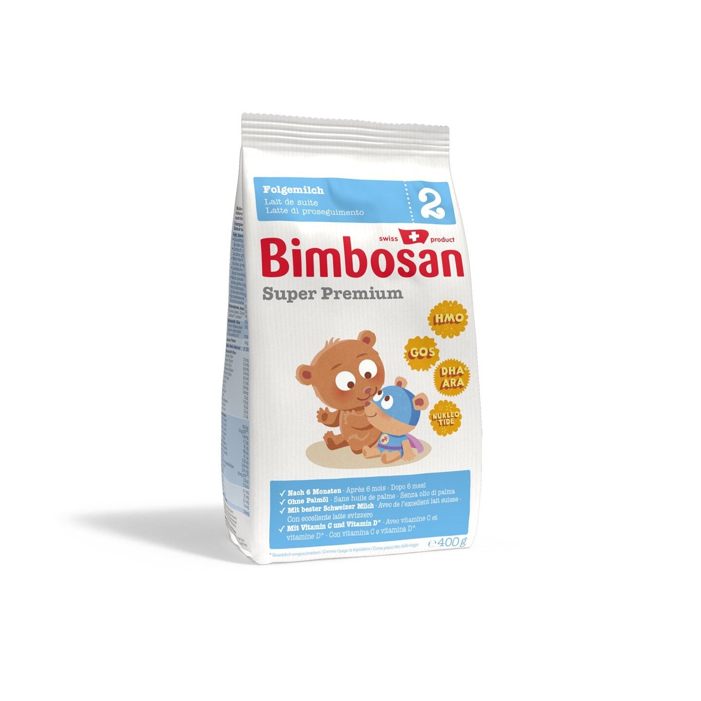 Die Super-Modernen, Auch die modernsten Bimbosan-Milchen enthalten erstklassige Schweizer Kuhmilch. Unsere Super Premium Milchen überzeugen durch ihren milchigen, exzellenten Geschmack und ihre ergänzenden Zutaten. Sie erfüllen die neusten Empfehlungen und Vorgaben und versorgen Säuglinge und Kleinkinder in jeder Phase mit den Nährstoffen, die sie brauchen. Super Premium 2 enthält mit Laktose nur ein Kohlenhydrat.