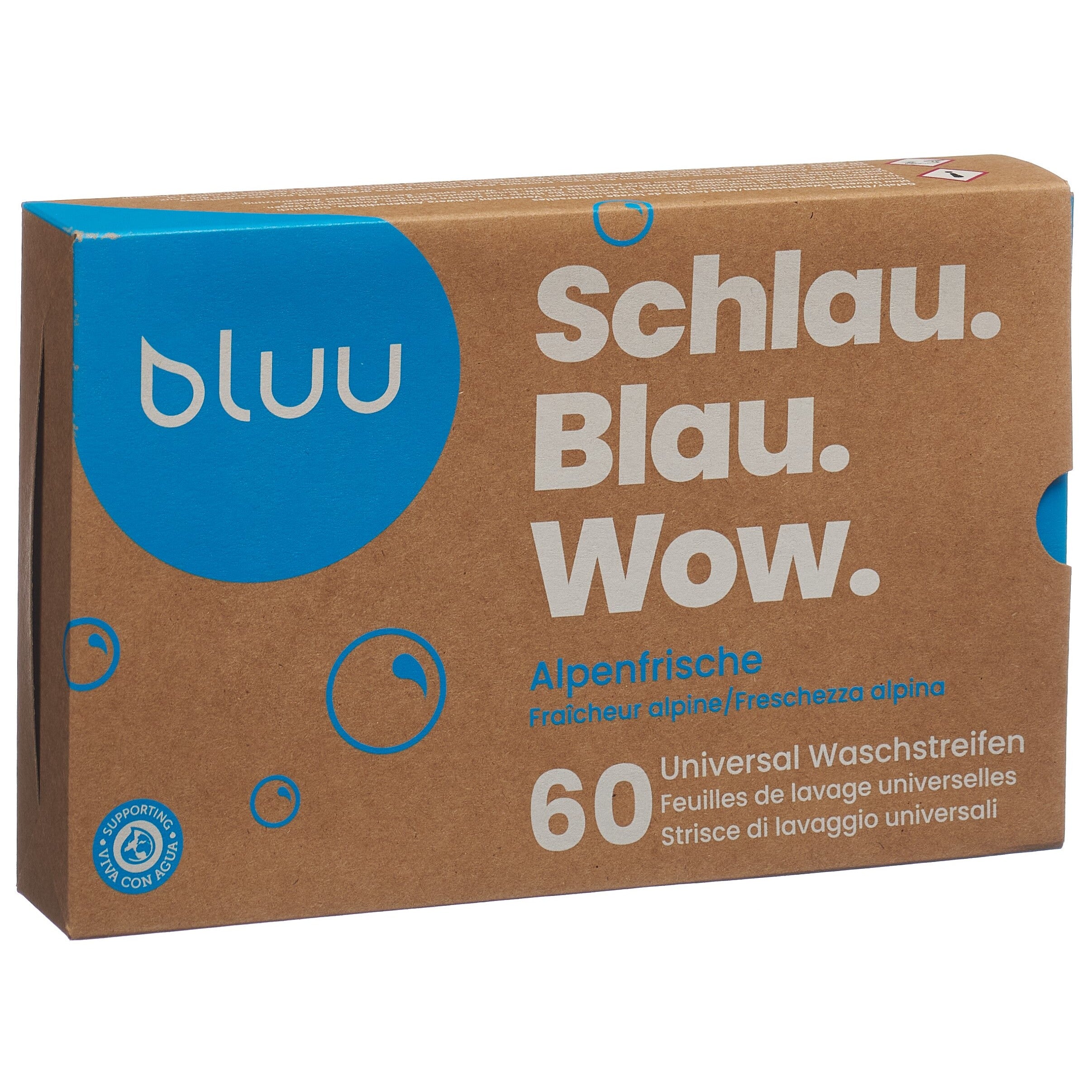 Pro Waschgang wird nur ein Streifen benötigt. Das Produkt kann sowohl für weisse wie auch für bunte Wäsche eingestzt werden und für Waschgänge von 15-95 °C. Bluu eignet sich auch zur Handwäsche auf Reisen. Dieses Produkt enthält den dezenten Duft Alpenfrische.