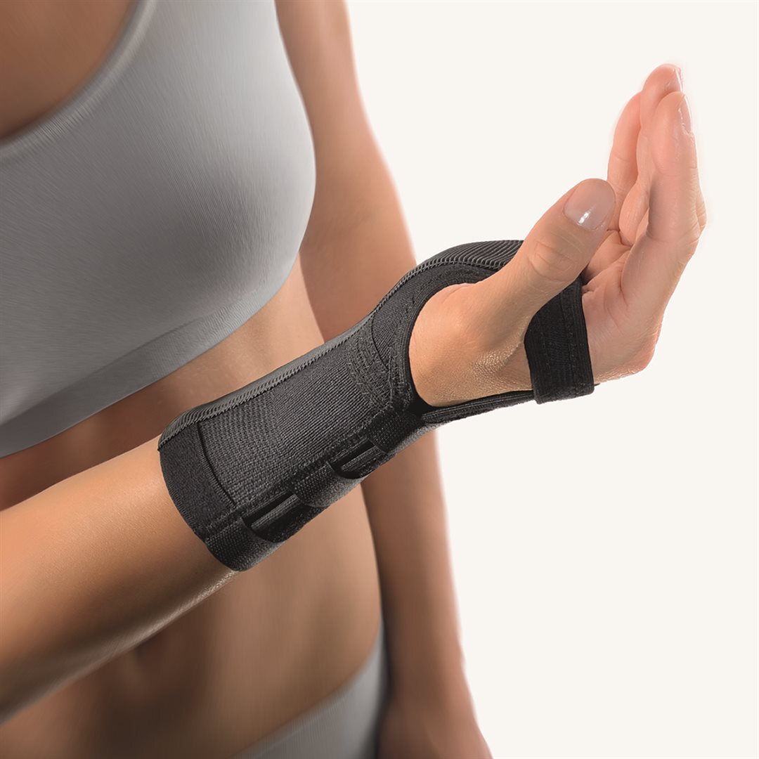 PRODUKTMERKMALE: Klassische Handgelenkbandage Volare Alu-Schiene, individuell anformbar, in strapazierfähiger Tasche Leichtes Anlegen/Abnehmen, auch bei eingeschränkter Greiffähigkeit durch integrierte Schlupfhilfe und dorsale Klettverschlüsse Länge: 16 cm Farben: beige schwarz grau