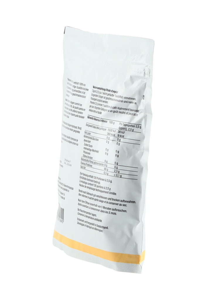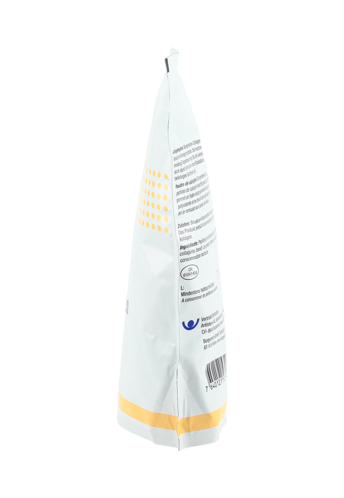 Bioaktive Kollagenpeptide (Kollagen-Hydrolysat, Rind). Das Produkt enthält für den menschlichen Verzehr geeignetes Kollagen..