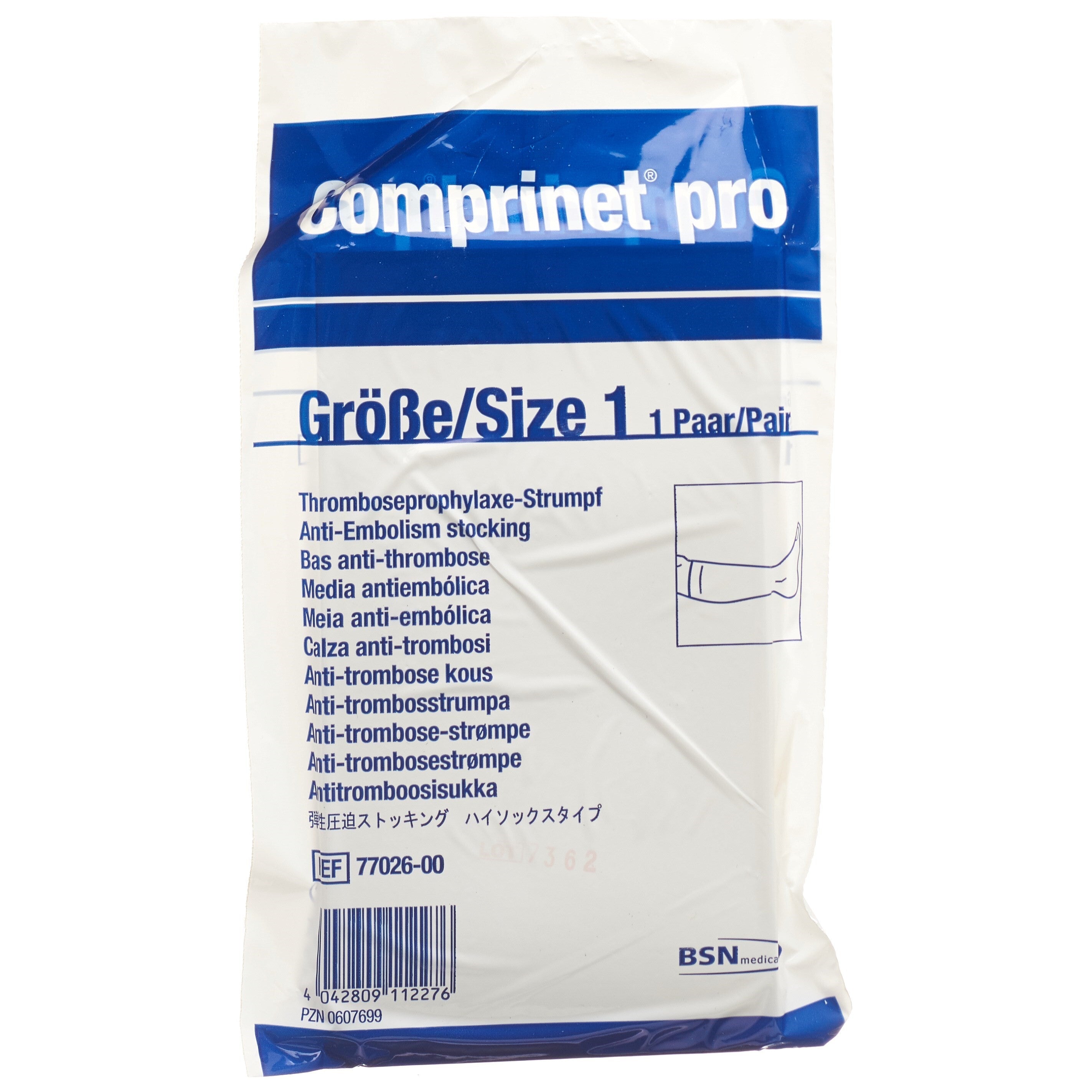 Comprinet® pro ist unter Berücksichtigung der speziellen Waschempfehlung bis zu 10-mal ohne Beeinträchtigung des Druckprofils waschbar. Comprinet® pro ist nahtlos rundgestrickt. Der Strumpf ist mit einem Einnähetikett ausgestattet, auf dem die Grösse waschfest aufgedruckt ist, und er verfügt zudem über einen individuellen Barcode sowie ein Musterfeld zur Dokumentation des Waschens. Eine einfache Grössenerkennung wird durch die Farbkennzeichnung am Zehensichtfenster an der Fussoberseite ermöglicht.