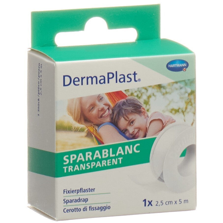 Das DermaPlast® Sparablanc Fixierpflaster (Heftpflaster) ist ideal zur Fixation von Wundauflagen. Das Pflaster besteht aus mikroperforierter Folie und ist hautfreundlich, wasserfest, transparent und von Hand reissbar. Auch im praktischen Dispenser für ein präzises Abreissen in einer Clipdose oder als Sparrolle erhältlich.