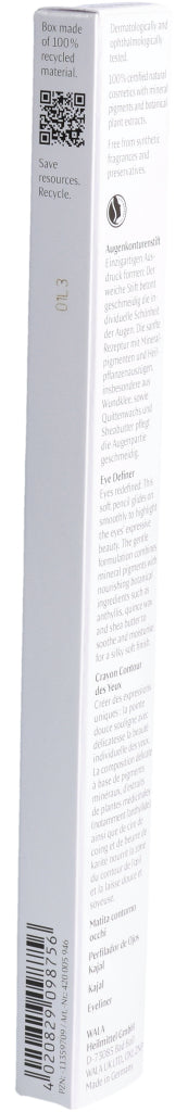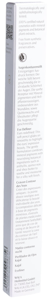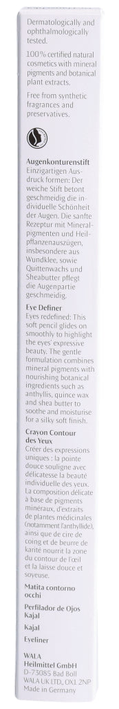 Einzigartigen Ausdruck formen: Der weiche Stift betont geschmeidig die individuelle Schönheit der Augen. Die sanfte Rezeptur mit Mineralpigmenten und Heilpflanzenauszügen, insbesondere aus Wundklee, sowie Quittenwachs und Sheabutter pflegt die Augenpartie geschmeidig.