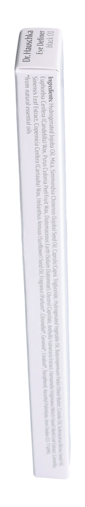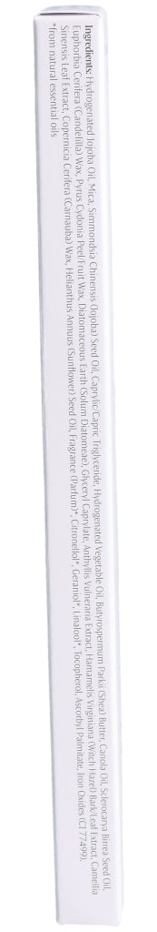 Jojobawachs, Glimmer, Jojobaöl, Neutralöl, Pflanzenöl (gehärtet), Sheabutter, Canolaöl, Marulaöl, Candelillawachs, Quittenwachs, Kieselerde, Glycerin-Fettsäureester, Auszüge aus Wundklee, Zaubernuss und Schwarztee, Carnaubawachs, Sonnenblumenöl, Ätherische Öle, Vitamin E, Vitamin-C-Palmitat, Eisenoxid. *aus natürlichen ätherischen Ölen.