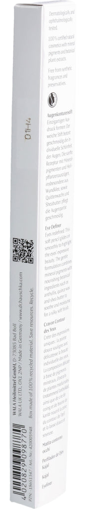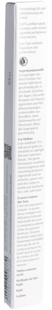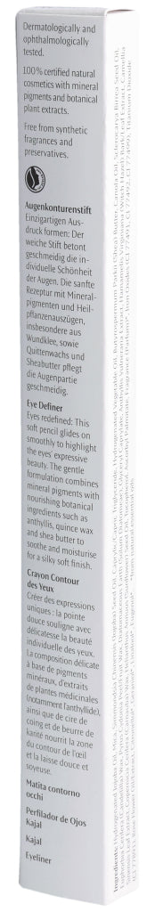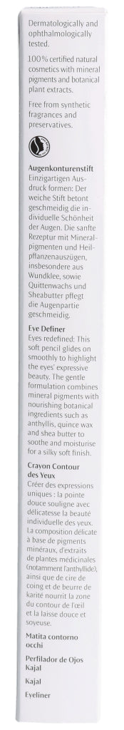Einzigartigen Ausdruck formen: Der weiche Stift betont geschmeidig die individuelle Schönheit der Augen. Die sanfte Rezeptur mit Mineralpigmenten und Heilpflanzenauszügen, insbesondere aus Wundklee, sowie Quittenwachs und Sheabutter pflegt die Augenpartie geschmeidig.