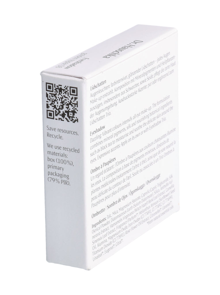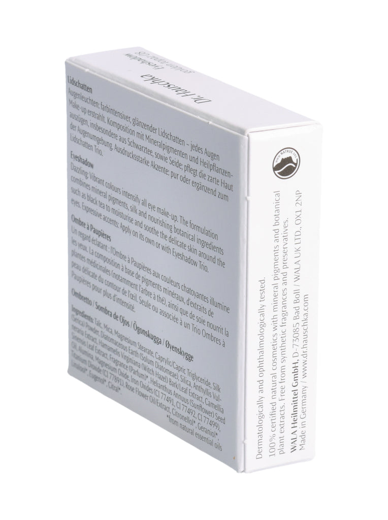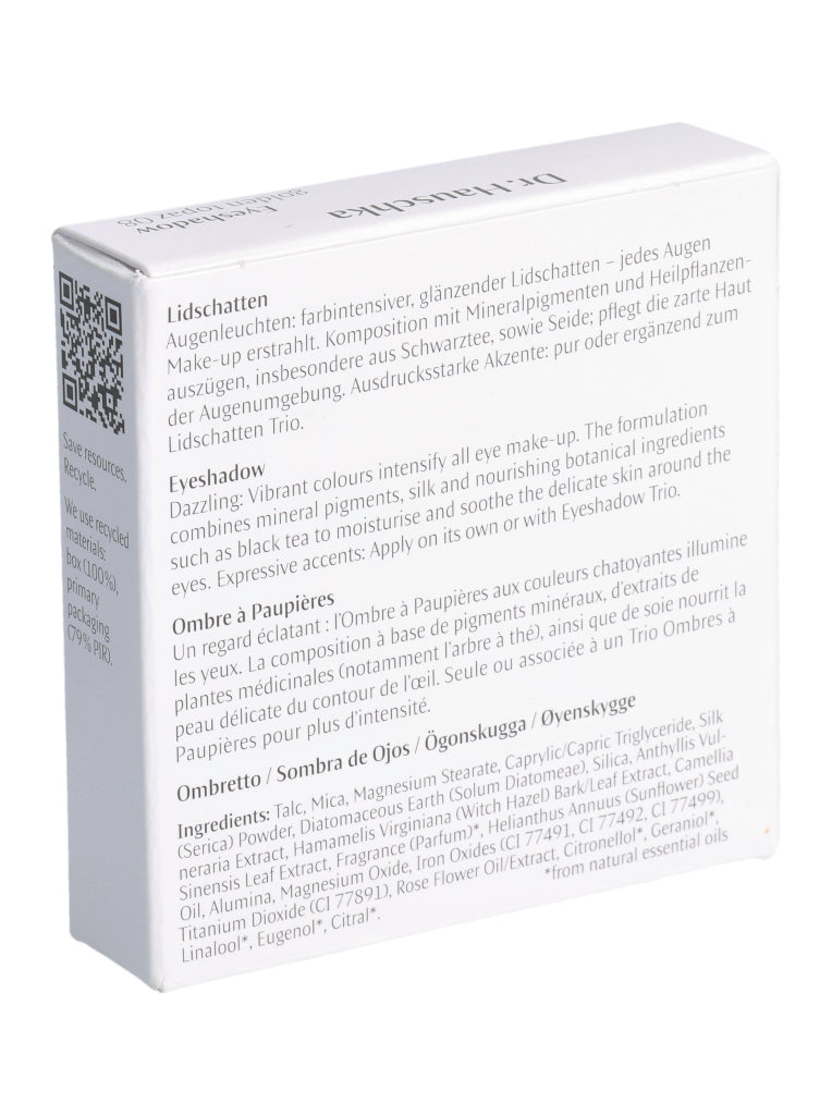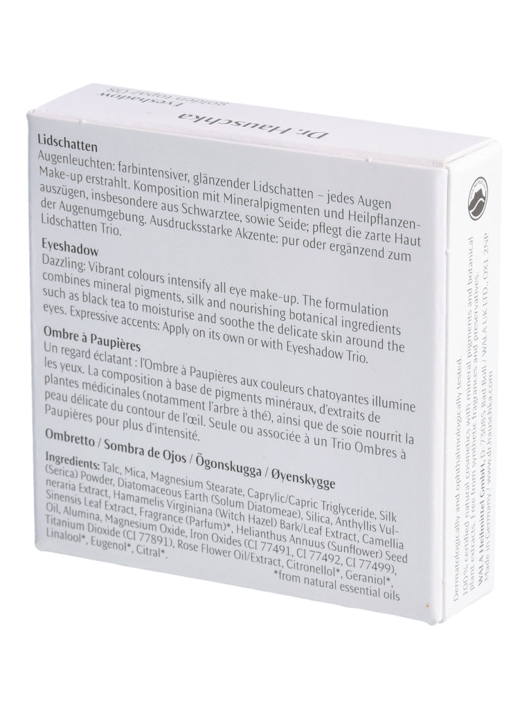 Augenleuchten: farbintensiver, glänzender Lidschatten — jedes Augen Make-up erstrahlt. Komposition mit Mineralpigmenten und Heilpflanzenauszügen, insbesondere aus Schwarztee, sowie Seide; pflegt die zarte Haut der Augenumgebung.