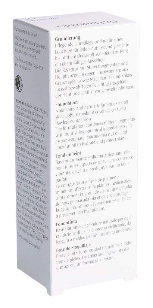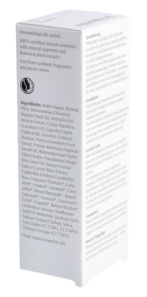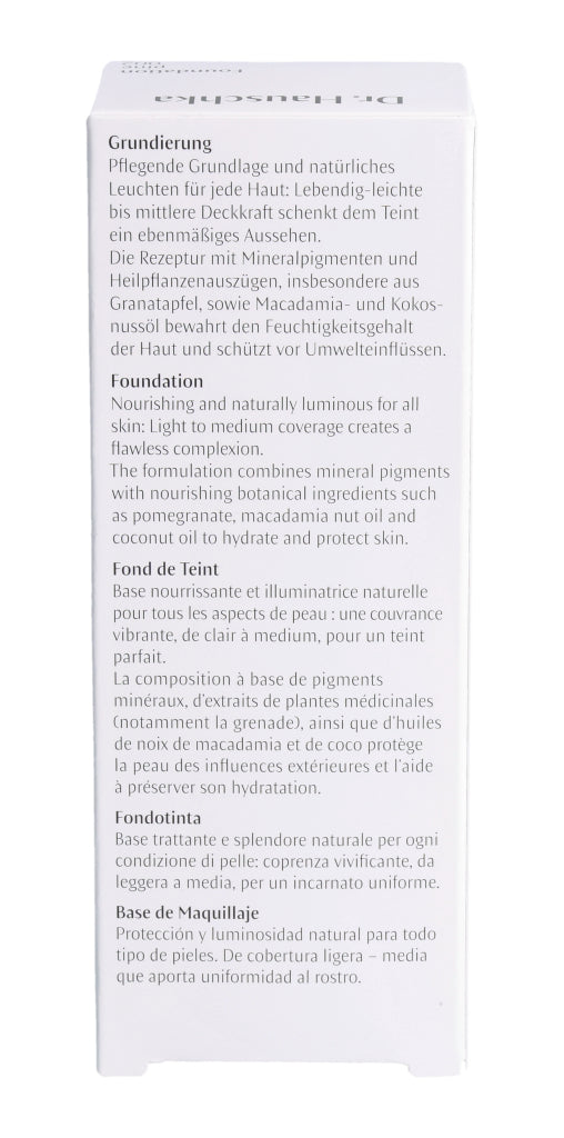 Pflegende Grundlage und natürliches Leuchten für jede Haut: Lebendig-leichte bis mittlere Deckkraft schenkt dem Teint ein ebenmäßiges Aussehen. Die Rezeptur mit Mineralpigmenten und Heilpflanzenauszügen, insbesondere aus Granatapfel, sowie Macadamia- und Kokosnussöl bewahrt den Feuchtigkeitsgehalt der Haut und schützt vor Umwelteinflüssen.