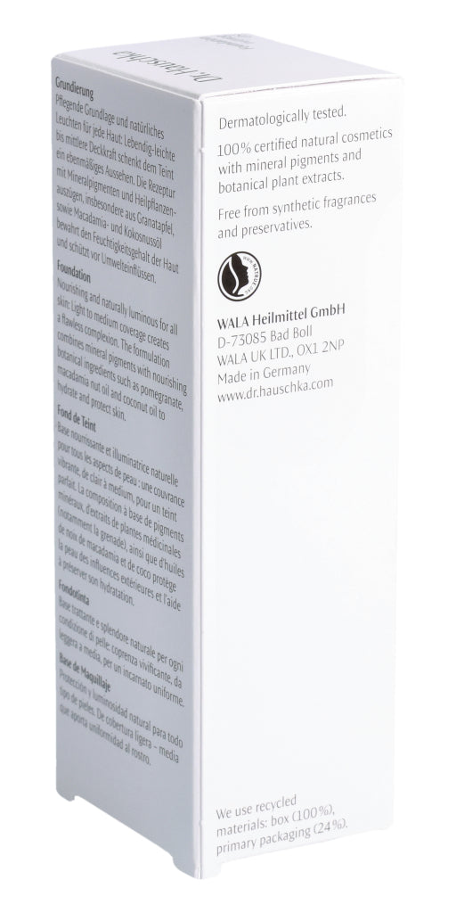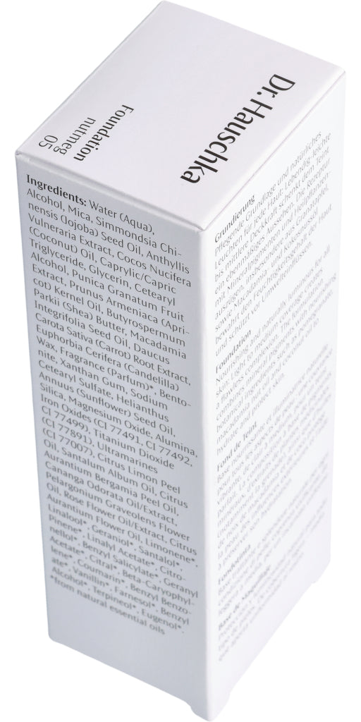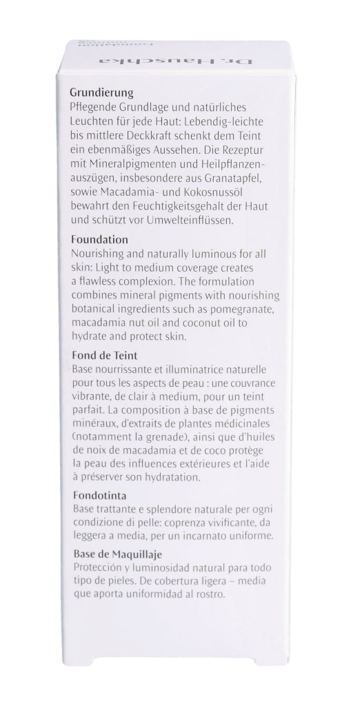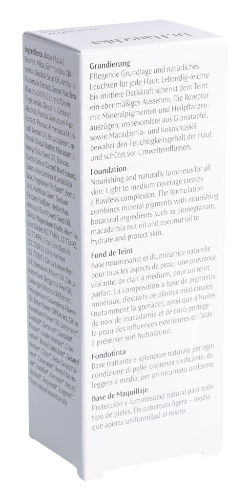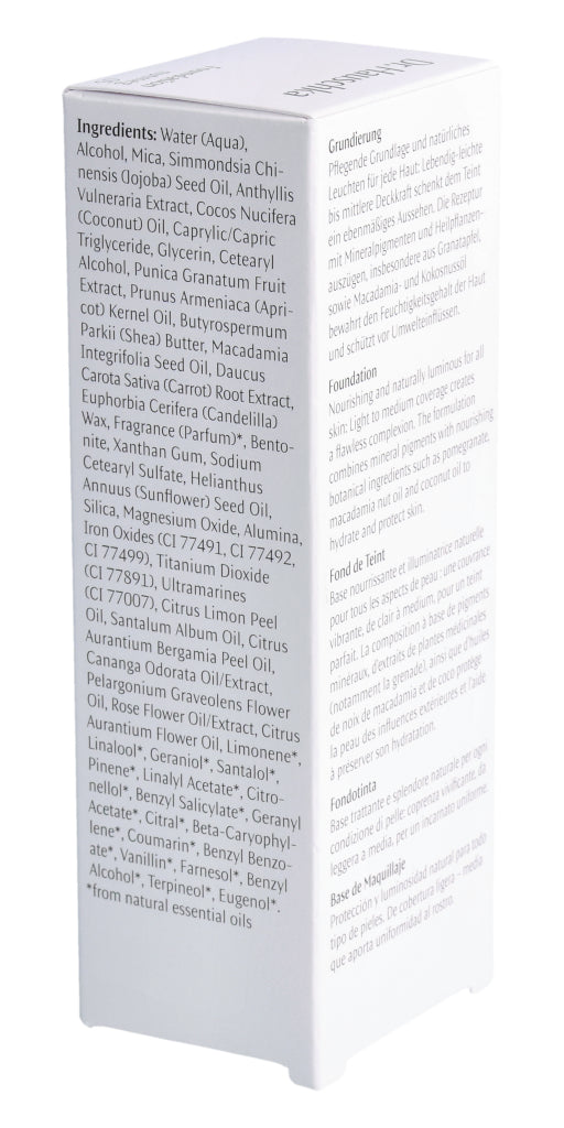 Pflegende Grundlage und natürliches Leuchten für jede Haut: Lebendig-leichte bis mittlere Deckkraft schenkt dem Teint ein ebenmäßiges Aussehen. Die Rezeptur mit Mineralpigmenten und Heilpflanzenauszügen, insbesondere aus Granatapfel, sowie Macadamia- und Kokosnussöl bewahrt den Feuchtigkeitsgehalt der Haut und schützt vor Umwelteinflüssen.