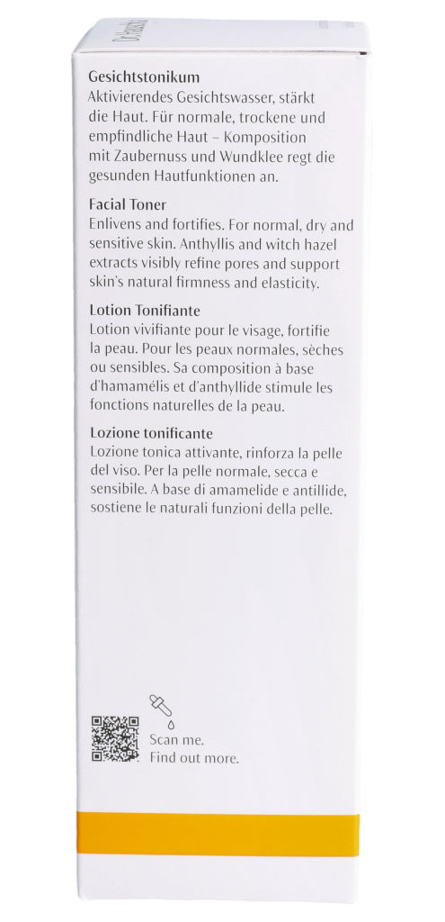 Das Gesichtstonikum regt die Eigenkräfte der Haut auf sanfte Art und Weise an. Es sorgt für einen rosigen Teint mit lebendiger Ausstrahlung. Für normale, trockene, empfindliche und regenerationsbedürftige Haut ist das Gesichtstonikum die ideale stärkende Basispflege.