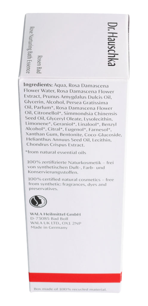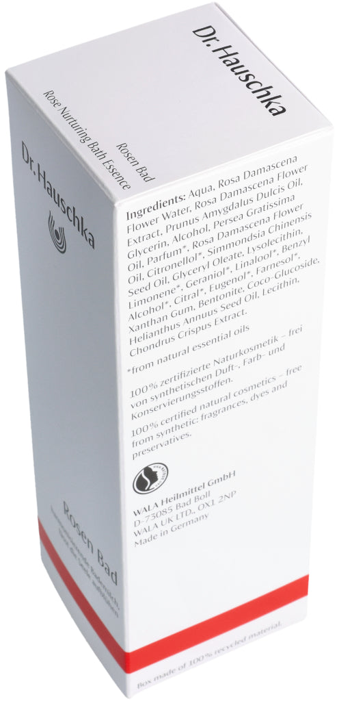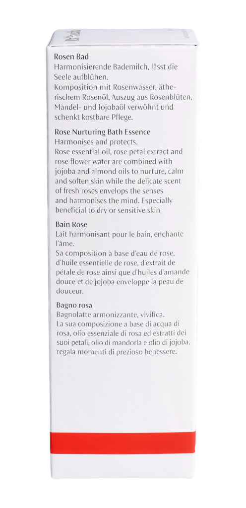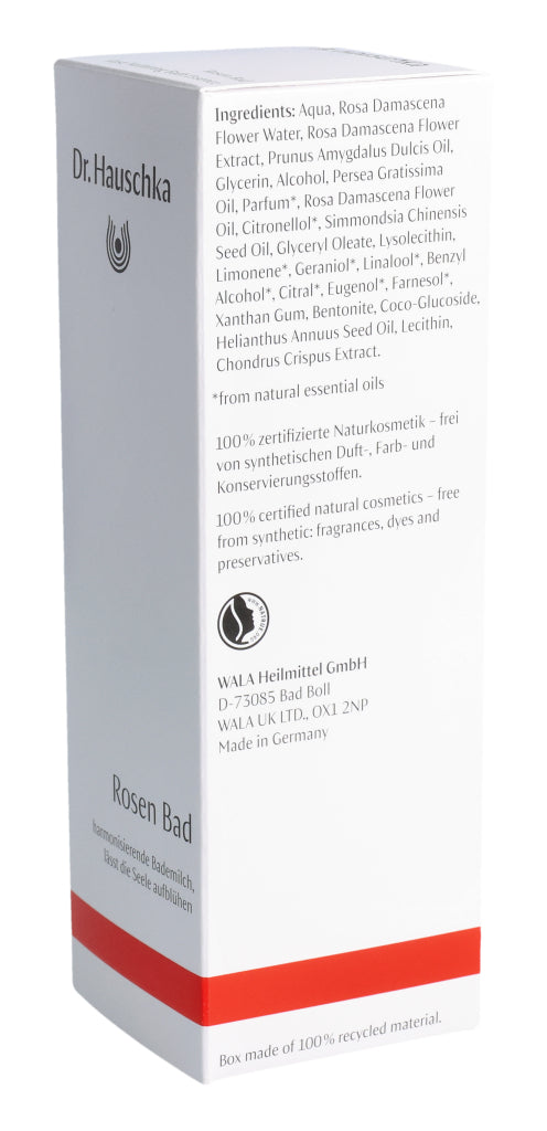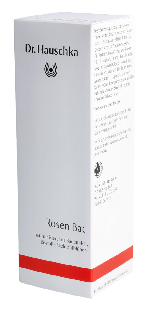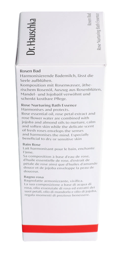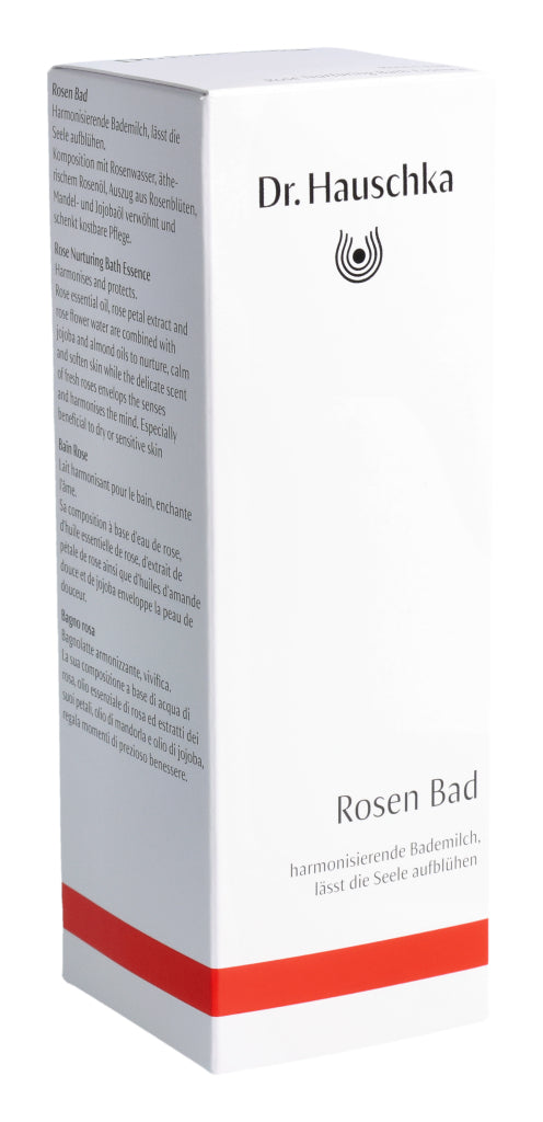 Das Rosenbad von Dr. Hauschka ist eine harmonisierende Bademilch zur verwöhnenden Pflege. Die Komposition besteht aus Rosenwasser, ätherischem Rosenöl, Auszug von Rosenblüten und Mandel- und Jojobaöl.
