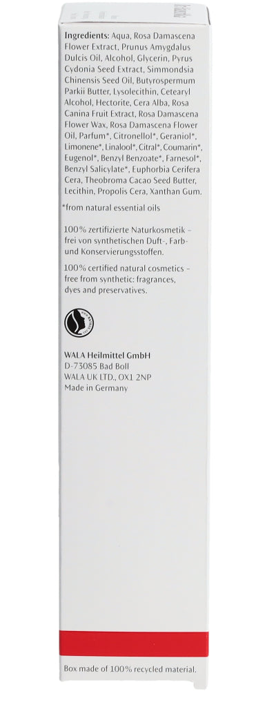 Der sahnige und doch reichhaltige Balsam regt die natürliche Schutzfunktion der Haut an und kräftigt sie: Rosenwachs, ätherisches Rosenöl sowie kostbare Auszüge aus Wildrosenfrüchten und Rosenblüten harmonisieren die Haut. Sheabutter aus dem von Dr. Hauschka initiierten Bio-Wildsammelprojekt in Burkina Faso sorgt gemeinsam mit Mandel- und Jojobaöl für eine intensive Pflege. Das Ergebnis: samtweiche Haut.