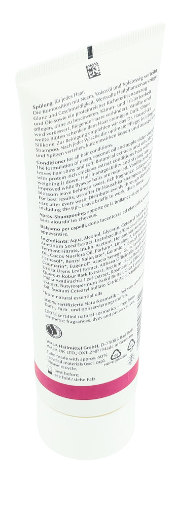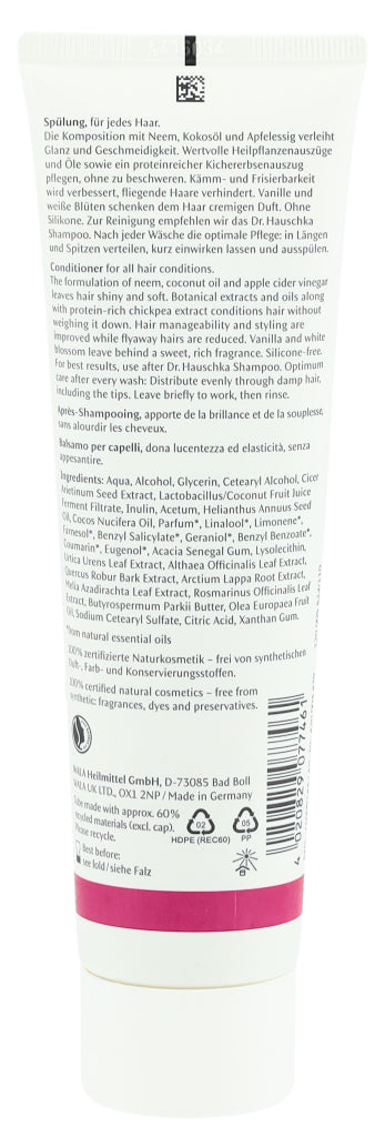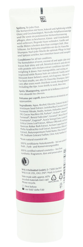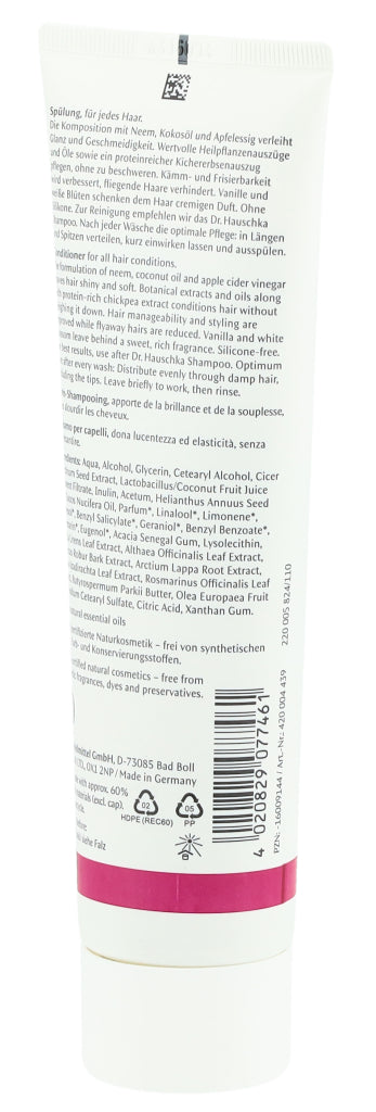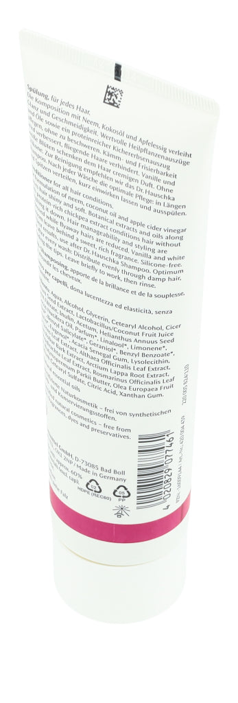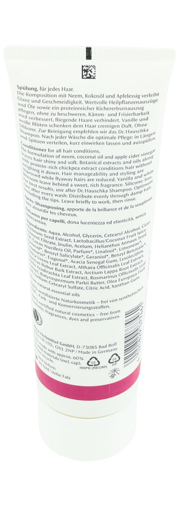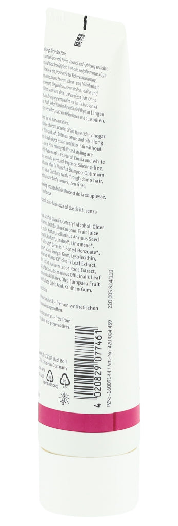 Die Spülung von Dr. Hauschka verleiht mit seiner aussergewöhnlichen Zusammensetzung aus Neem, Rosmarin und Quitte dem Haar Glanz und Geschmeidigkeit. Zudem schenken die beinhalteten ätherischen Öle von Zitrone, Bergamotte und Krauseminze eine angenehme Frische. Gleichzeitig pflegt ein proteinreicher Kichererbsenauszug das Haar und sorgt für eine gute Kämm- und Frisierbarkeit.