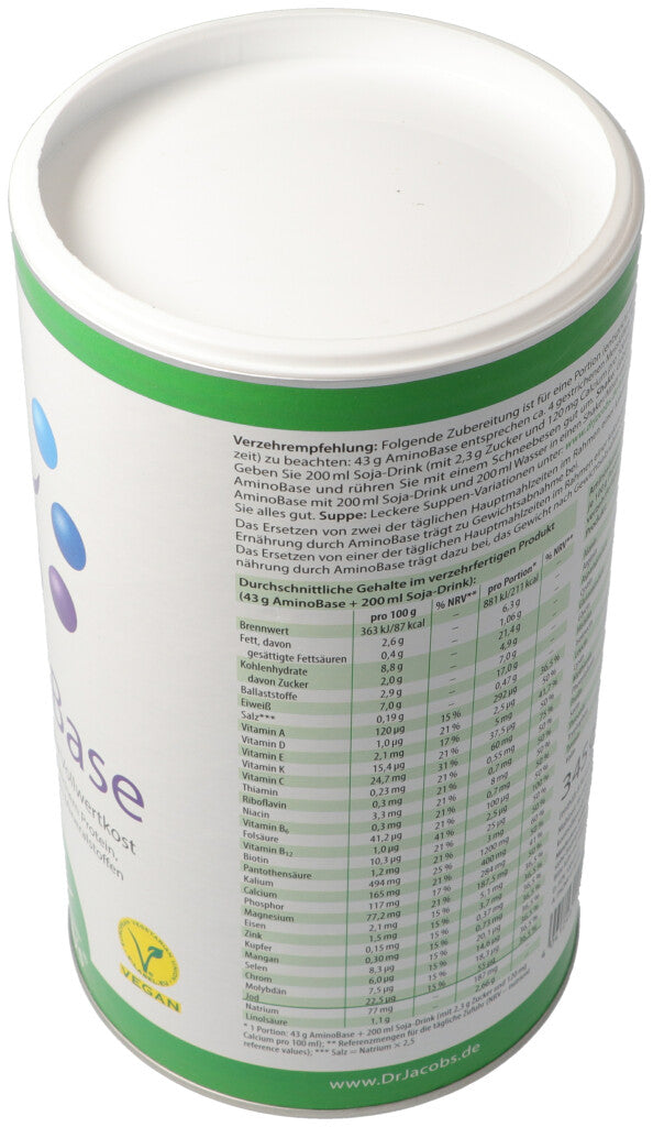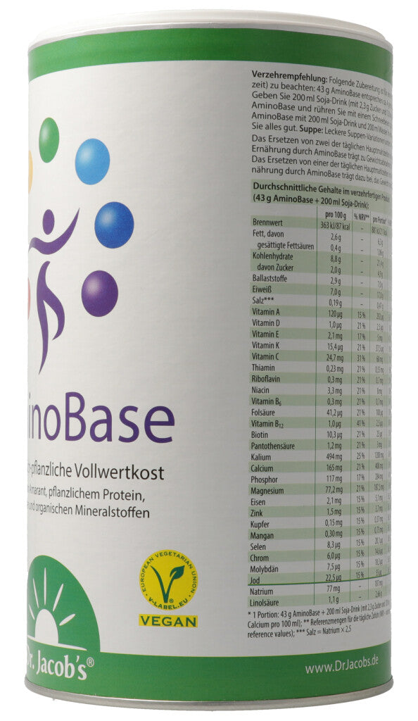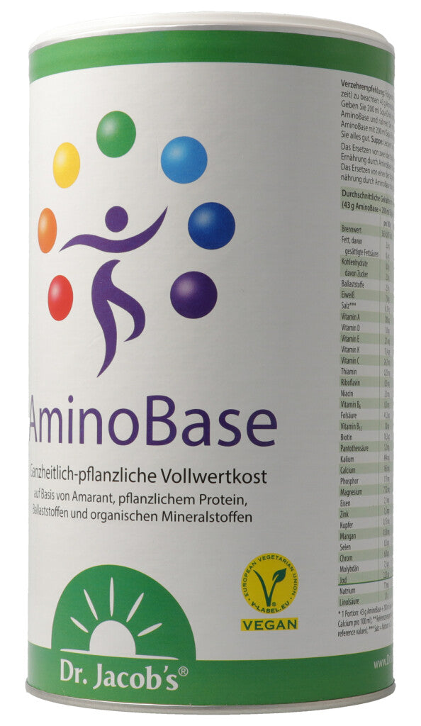 AminoBase liefert eine vollwertige Hauptmahlzeit ohne Gluten auf rein pflanzlicher Basis. Mit allen wichtigen Nährstoffen in einem natürlichen Verhältnis bietet es dem Körper eine rundum gesunde Grundversorgung. AminoBase enthält alle essentiellen Aminosäuren, essentielle Fettsäuren, komplexe Kohlenhydrate, Ballaststoffe, Mineralstoffe und Vitamine. Es ist reich an Zink, das den normalen Säure-Basen-Stoffwechsel unterstützt.