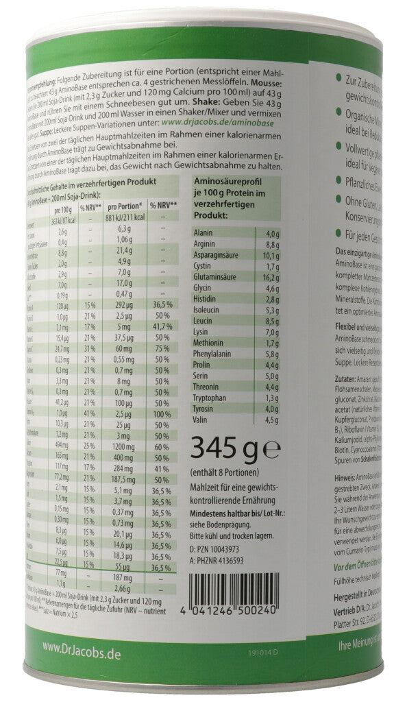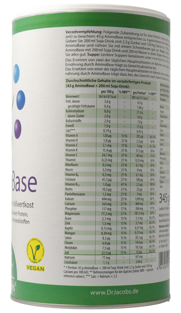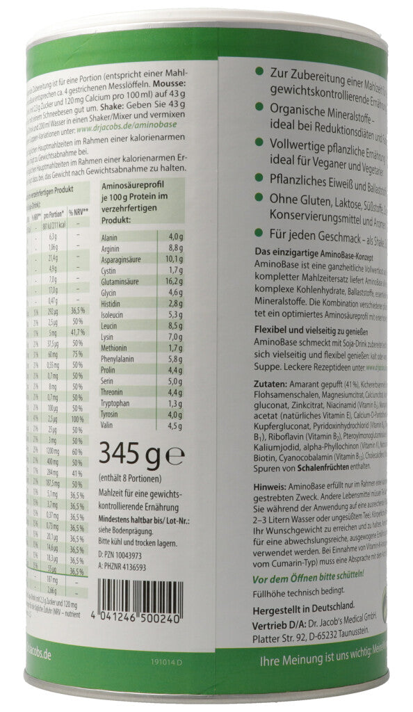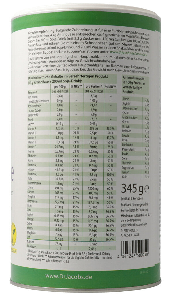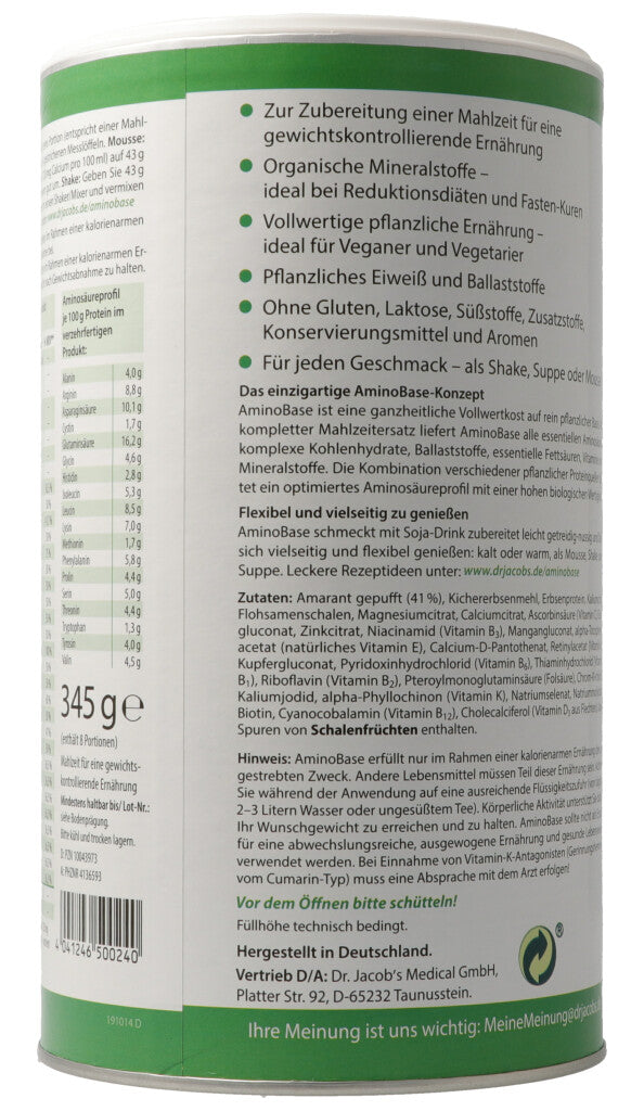 Dr. Jacob's AminoBase Diät-Shake Aminosäuren Proteine Ds 345 g