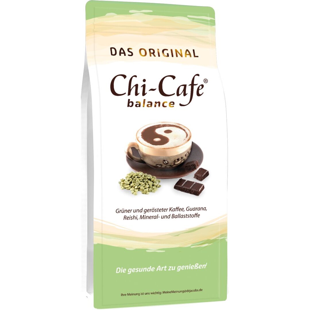 Chi-Cafe balance verbindet Genuss und Gesundheit. Er ist besonders bekömmlich und sanft anregend. Sein Geheimnis liegt in der harmonischen Komposition von Kaffee, Ballaststoffen, Magnesium, Auszügen aus grünen Kaffeebohnen und Granatäpfeln sowie aromatisierenden Extrakten aus Guarana, Ginseng und Reishi-Pilz. Das natürlich anregende Koffein stammt aus Guarana-Samen und Kaffee.