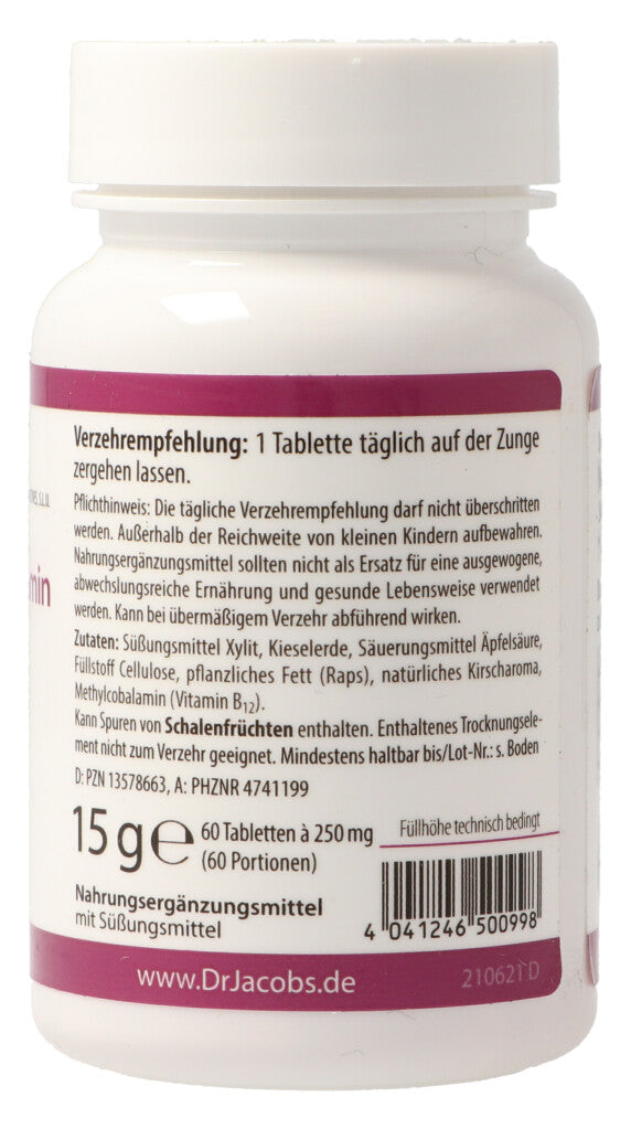 - Pro Lutschtablette 500 μg Vitamin B12 – hochdosiert, vegan