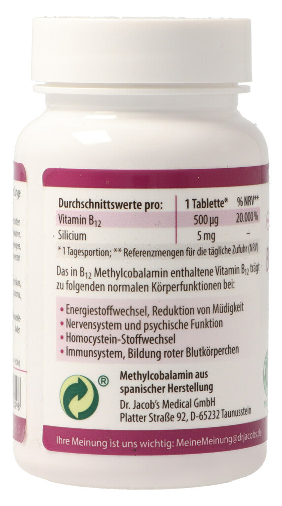 Wie die Europäische Behörde für Lebensmittelsicherheit bestätigt, ist eine Dosierung von 500 µg Vitamin B12 in Form von Methylcobalamin sicher.