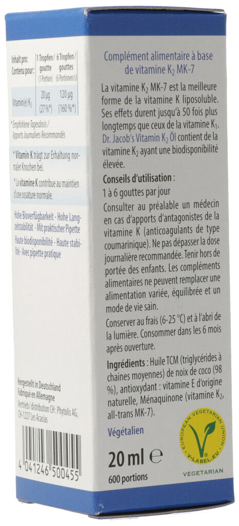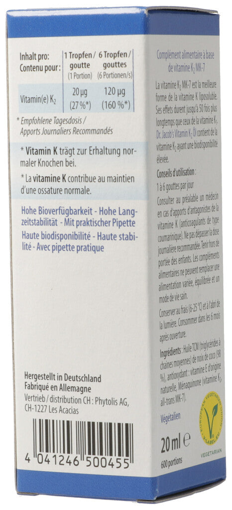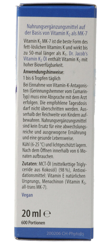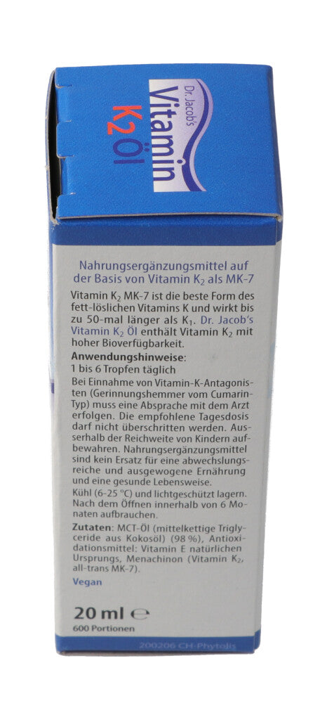 Dr. Jacob's Vitamin K2 Öl Tropfen all-trans MK7 vegan Pip Fl 20 ml