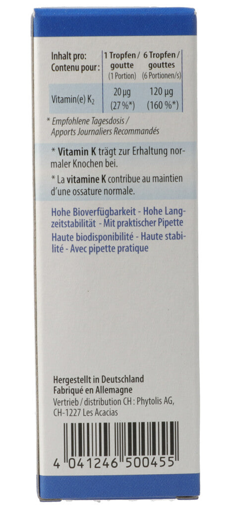 1 Tropfen enthält 20 µg Vitamin K2 (all-trans MK-7).