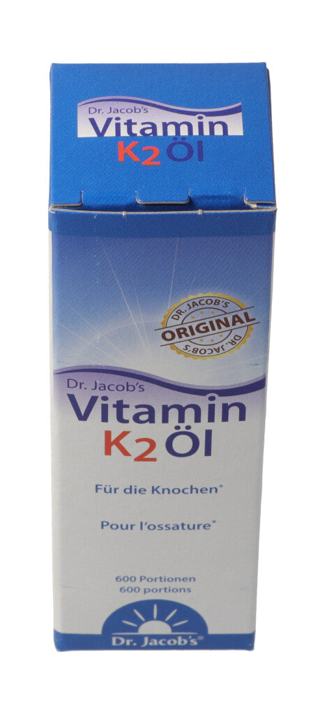 Mit Dr. Jacob‘s Vitamin K2 Öl erhalten Sie Vitamin K2 auf Öl-Basis. So kann das fettlösliche Vitamin sehr gut vom Körper aufgenommen werden – auch unabhängig von den Mahlzeiten.