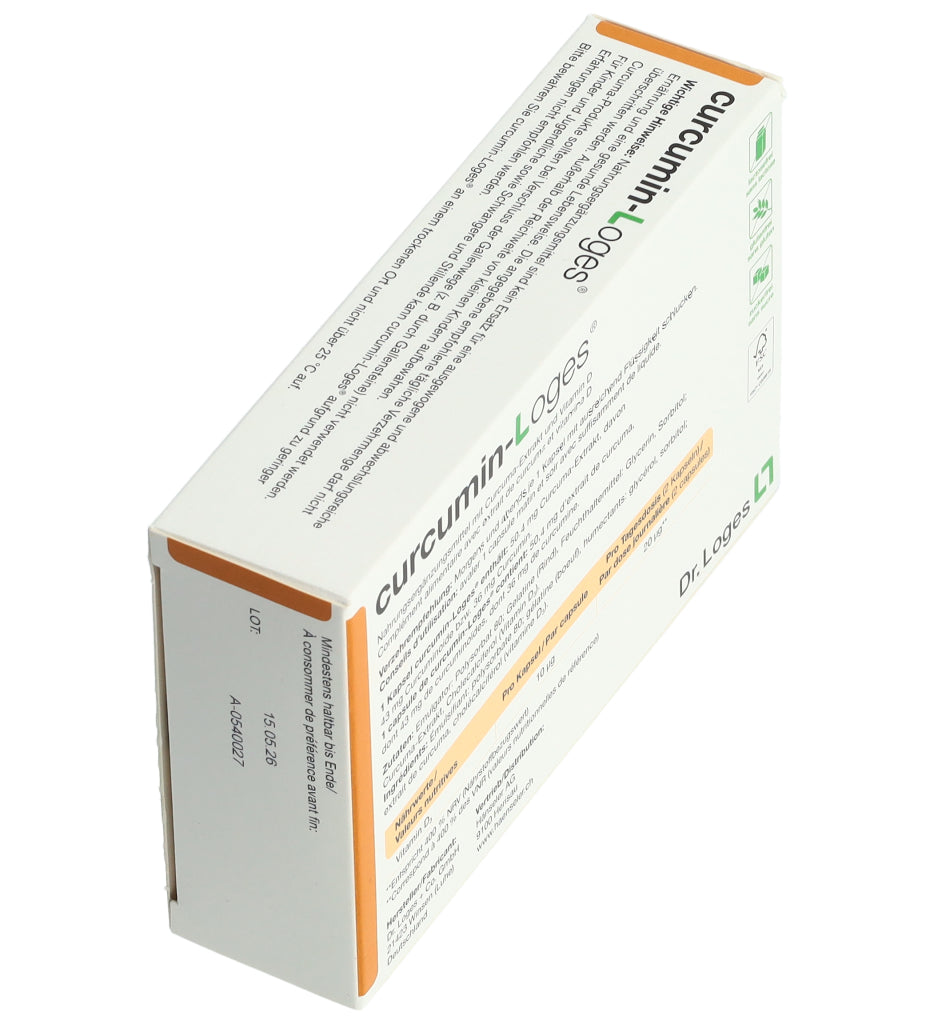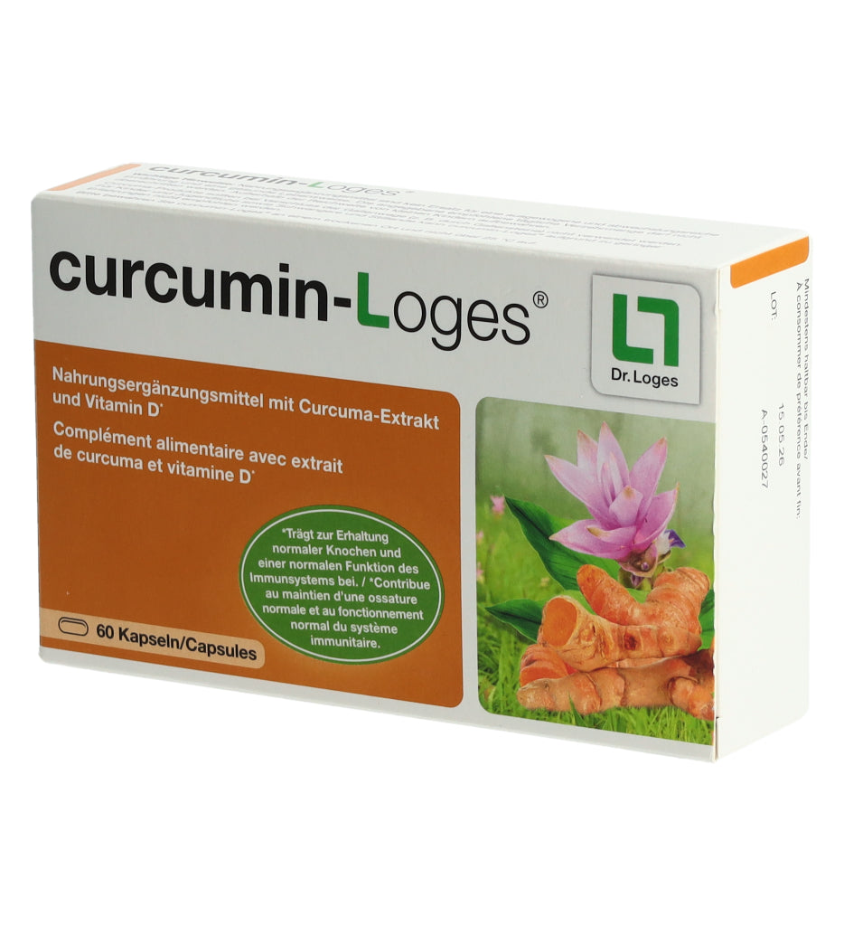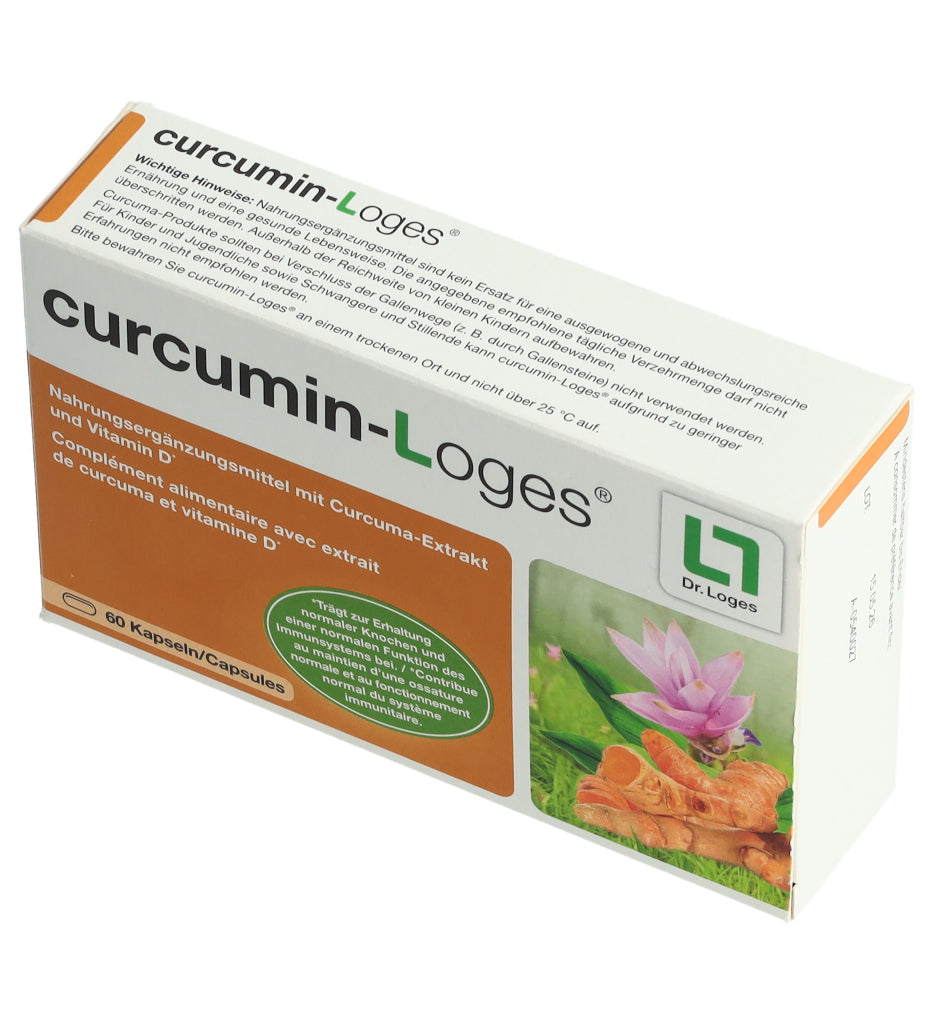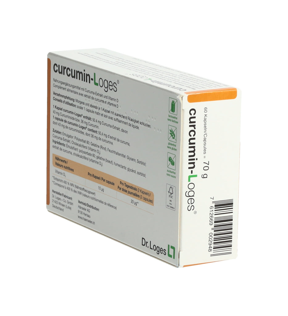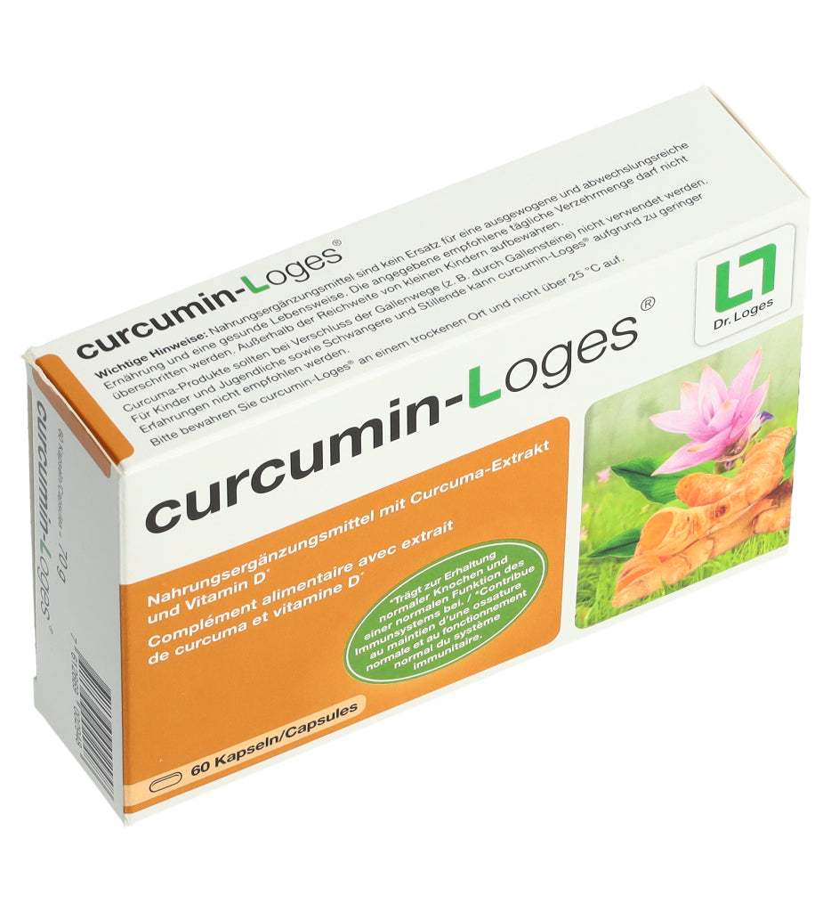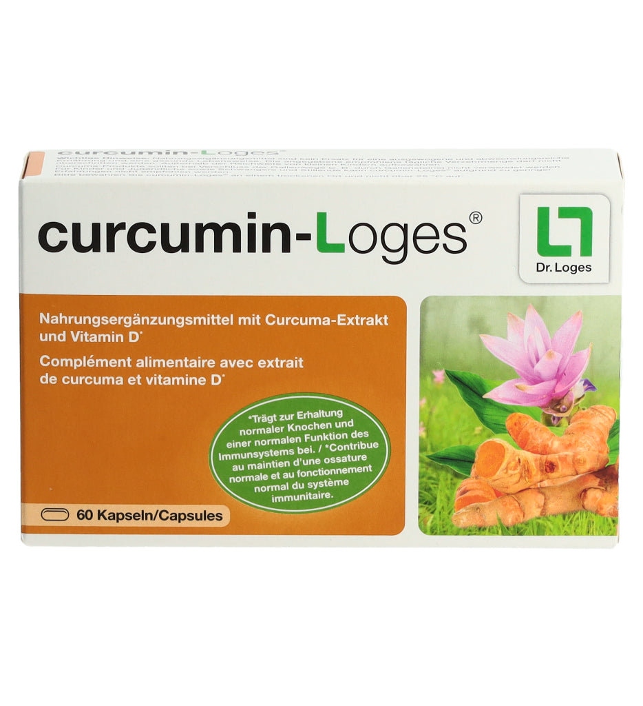 curcumin-Loges ist ein Nahrungsergänzungsmittel mit Curcuma-Extrakt und Vitamin D. Eine Kapsel enthält 50.4 mg Curcuma-Extrakt, davon 43 mg Curcuminoide bzw. 36 mg Curcumin. Morgens und abends je 1 Kapsel mit ausreichend Flüssigkeit schlucken.