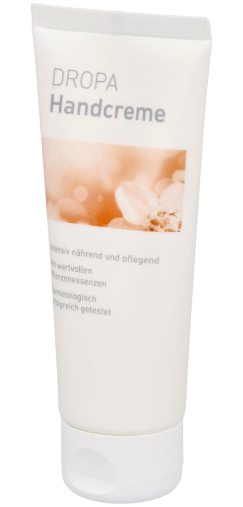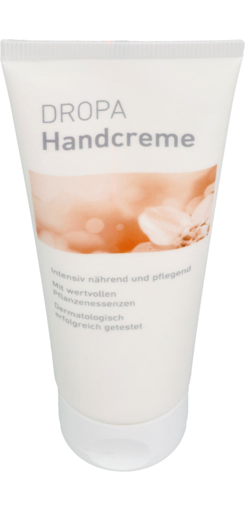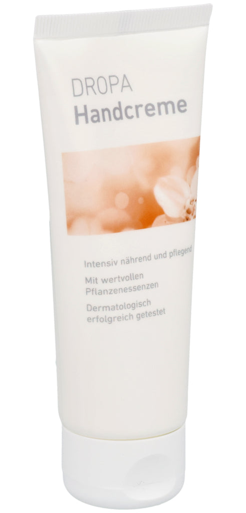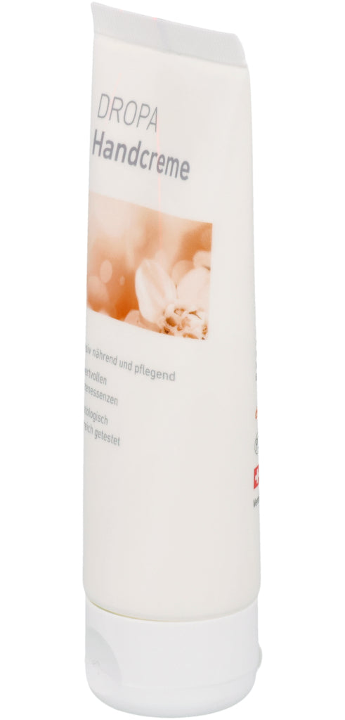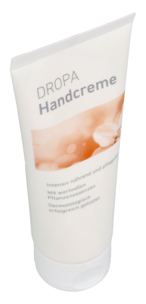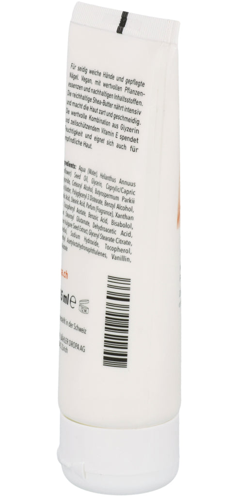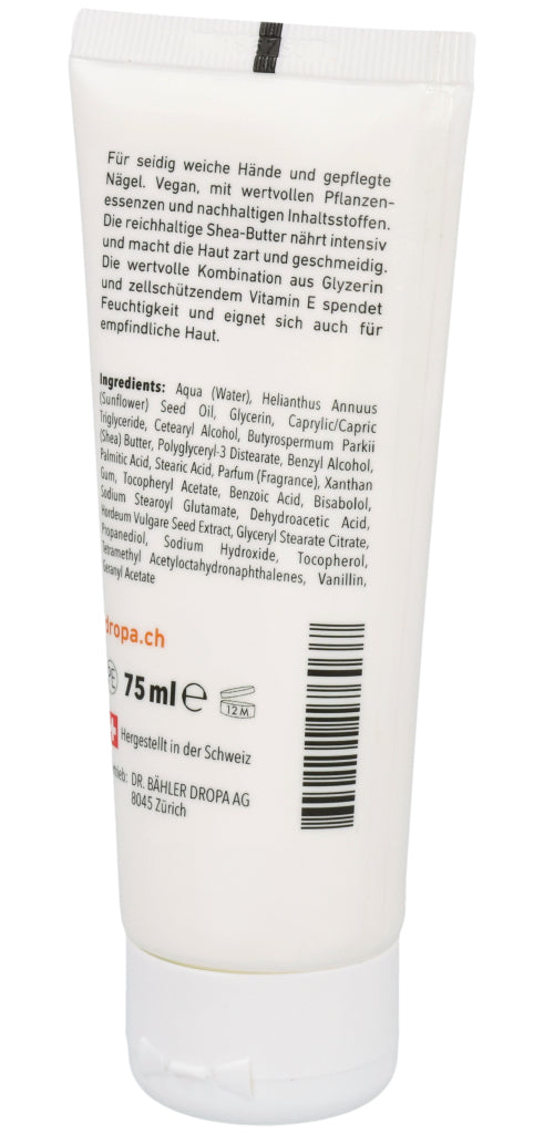 Die zart duftende DROPA Handcreme pflegt stark beanspruchte Hände mit rissiger und aufgesprungener Haut. Vegan, mit wertvollen Pflanzenessenzen und nachhaltigen Inhaltsstoffen. Die reichhaltige Shea-Butter nährt intensiv und macht die Haut zart und geschmeidig. Die wertvolle Kombination aus Glyzerin und zellschützendem Vitamin E spendet Feuchtigkeit und eignet sich auch für empfindliche Haut.
