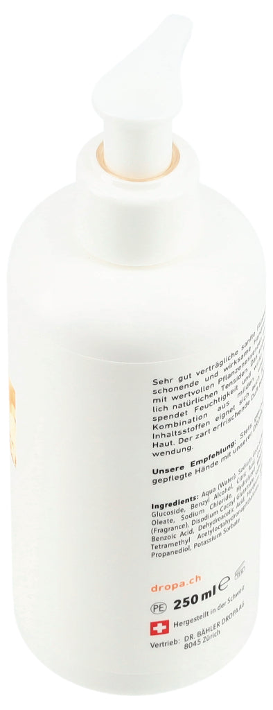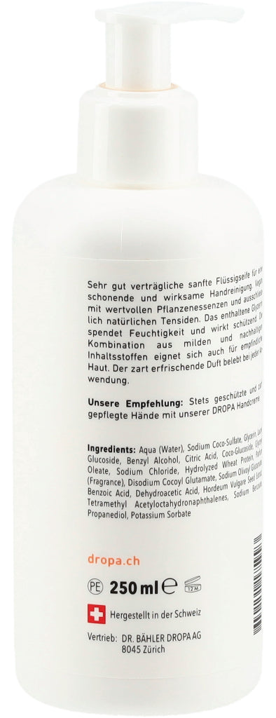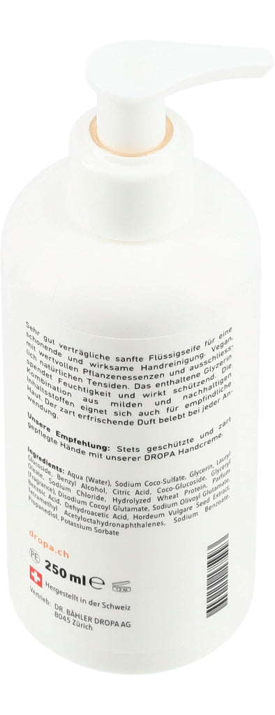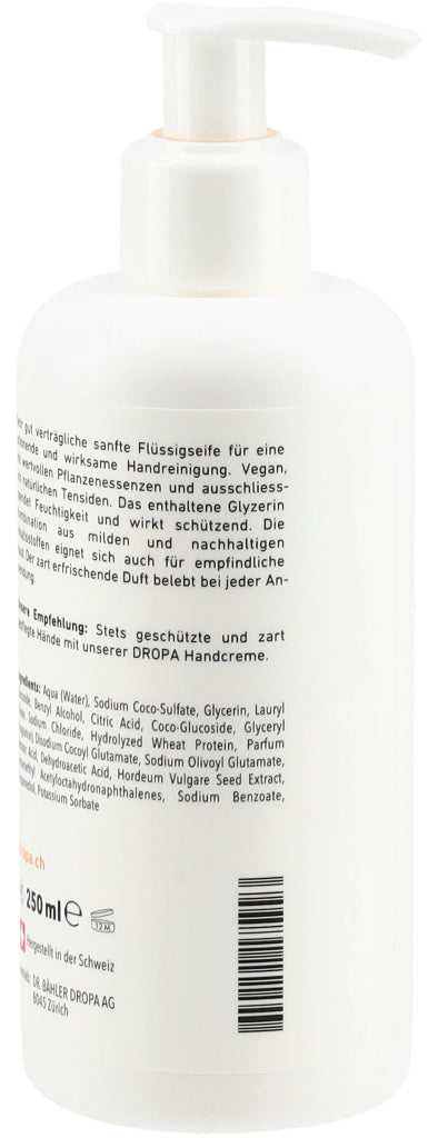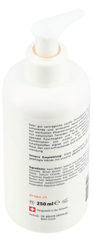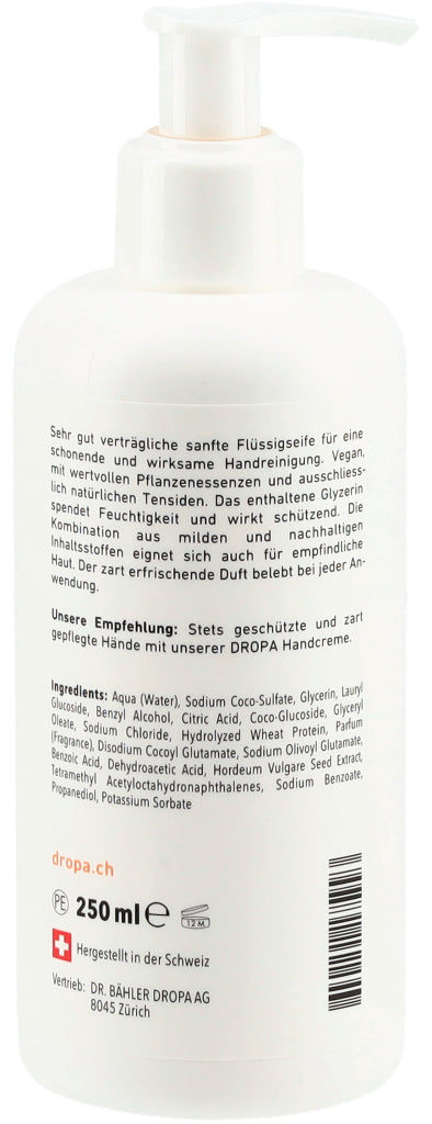 Vegan, mit wertvollen Pflanzenessenzen und ausschliesslich natürlichen Tensiden. Das enthaltene Glyzerin spendet Feuchtigkeit und wirkt schützend. Die Kombination aus milden und nachhaltigen Inhaltsstoffen eignet sich auch für empfindliche Haut. Der zart erfrischende Duft belebt bei jeder Anwendung.