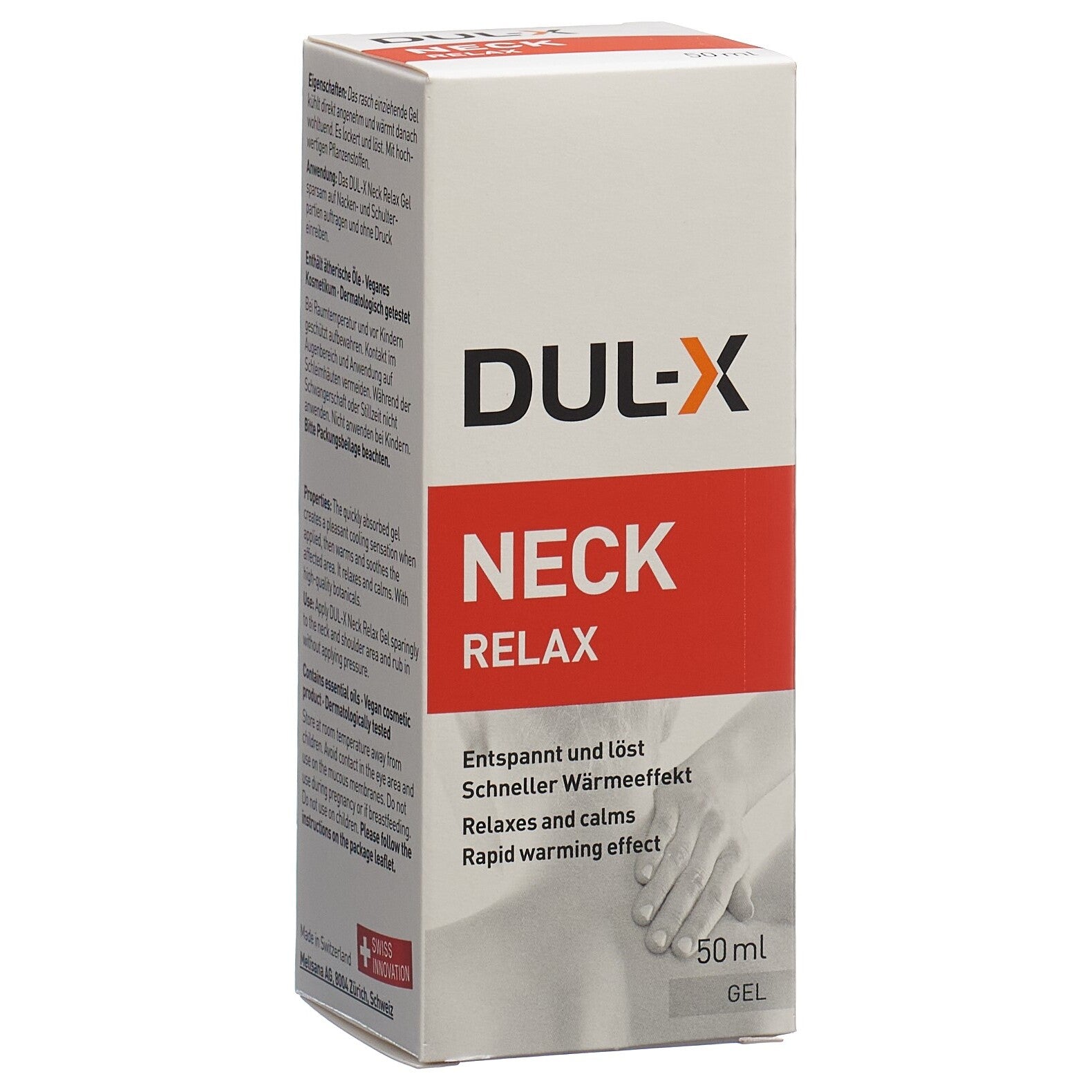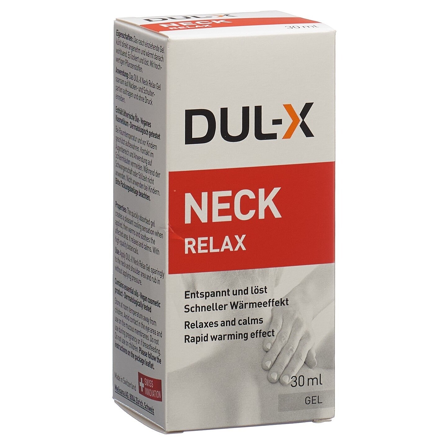 Das rasch einziehende Gel kühlt direkt angenehm und wärmt danach wohltuend. Es lockert und löst. Mit hochwertigen Pflanzenstoffen. DUL-X Neck Relax Gel wird sparsam auf Nacken- und Schulterpartien aufgetragen und ohne Druck eingerieben. Das Produkt ist ein veganes Kosmetikum und enthält ätherische Öle. Es ist dermatologisch getestet. Kontakt im Augenbereich und Anwendung auf Schleimhäuten vermeiden. Während der Schwangerschaft oder Stillzeit soll DUL-X Neck Relax Gel nicht verwendet werden.