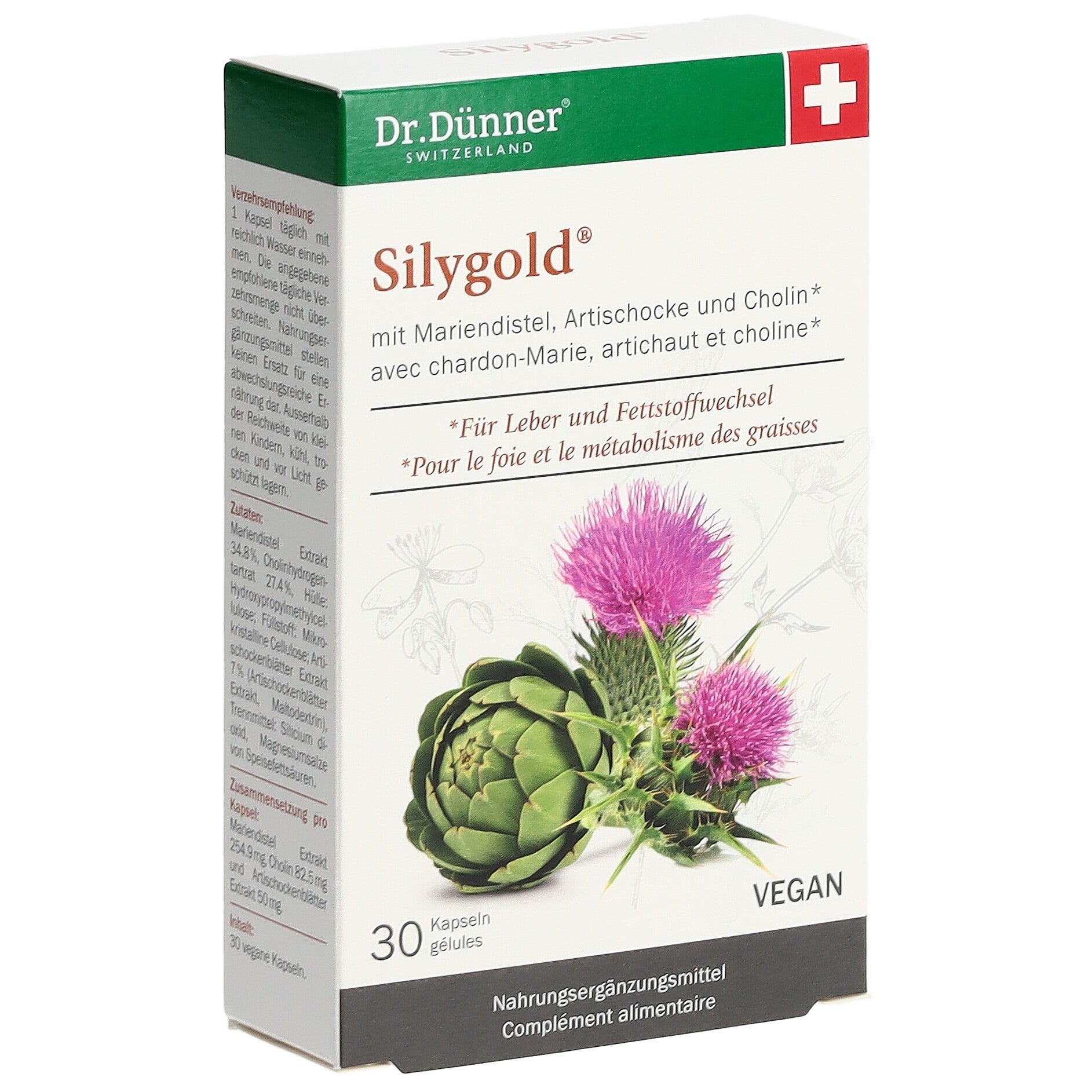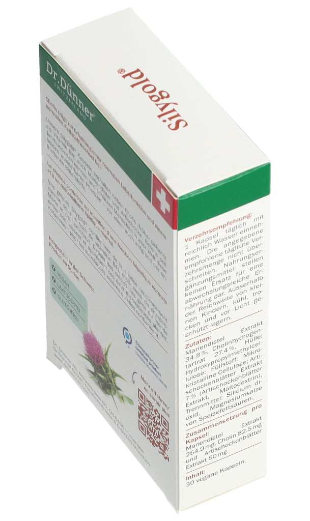 Mit Mariendistel, Artischocke und Cholin. Cholin (früher bekannt als Vitamin B4) trägt zur Erhaltung einer normalen Leberfunktion und einem normalen Fettswoffwechsel bei.