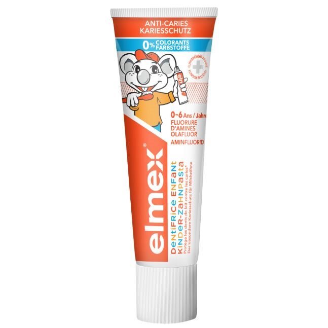 Die elmex Kinder Zahnpasta für Kinder von 0-6 Jahren enthält das einzigartige Aminfluorid für einen Dreifach-Schutzmechanismus. Speziell entwickelt für den besonderen Kariesschutz der Milchzähne.